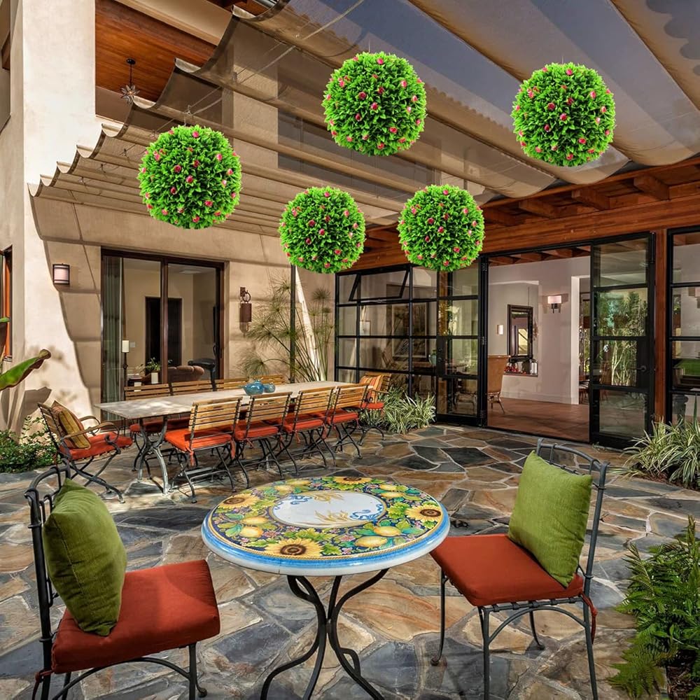 【Eco-friendly Material】The artificial plant ball is made from high-quality plastic by modern technology ,every stem is made of super-strong high density PE and contains 4 layers,durability and UV protection. Look the same as the real but more long-lasting than it,perfect for both indoor and outdoor decor.