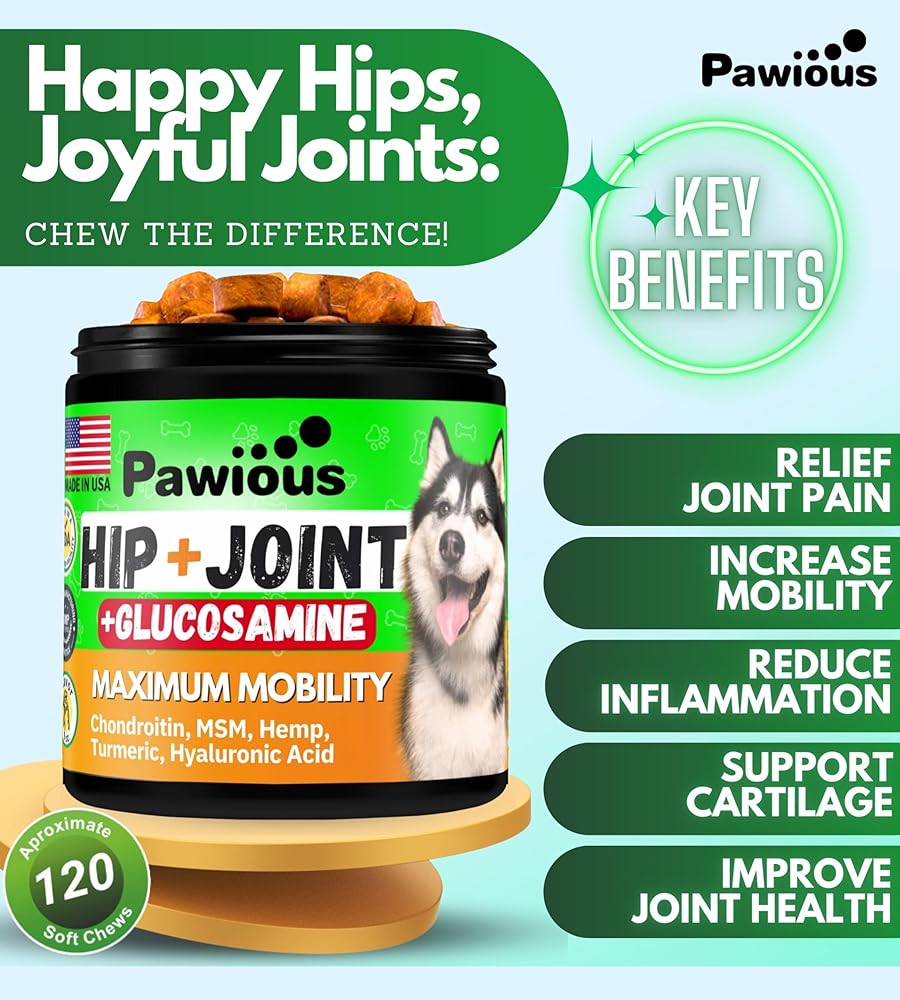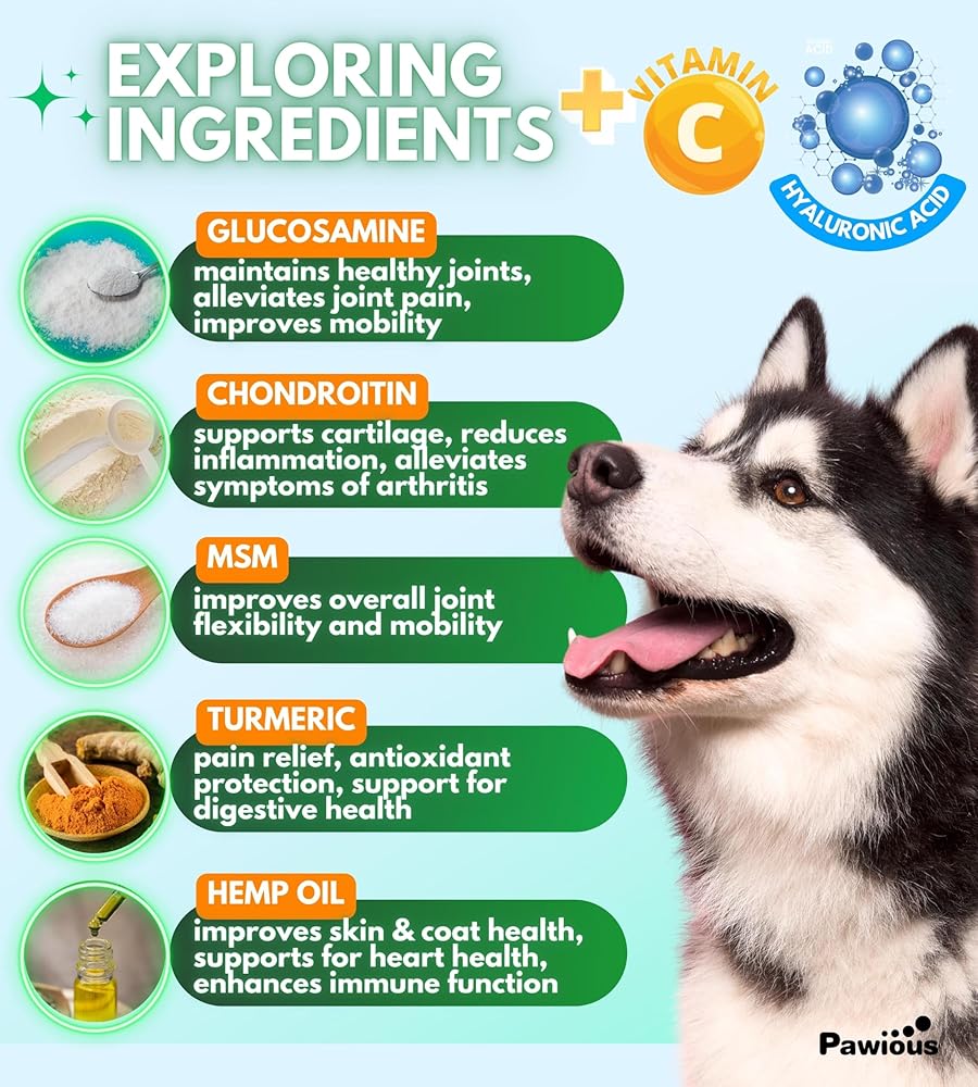 【Relief from Joint Pain】Our Glucosamine for dogs is expertly crafted to ease joint pain and stiffness, ensuring your dog moves with comfort and ease. Experience the difference with our premium ingredients, including hemp oil, turmeric, and glucosamine chondroitin for dogs.