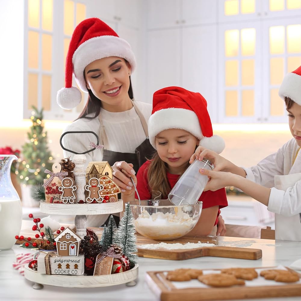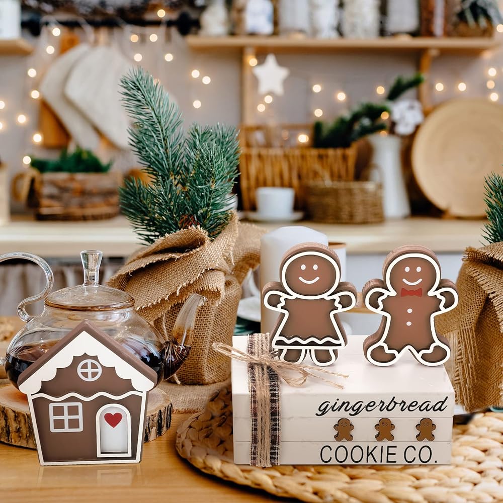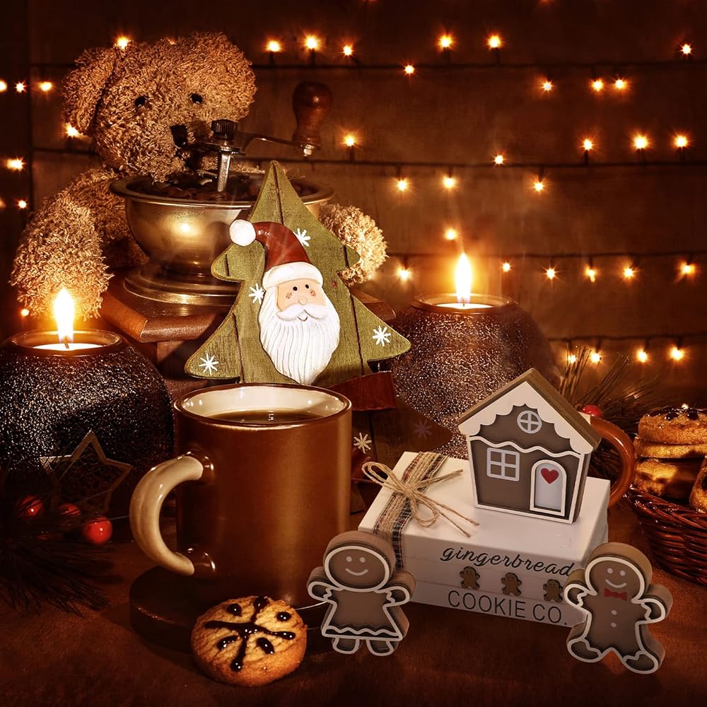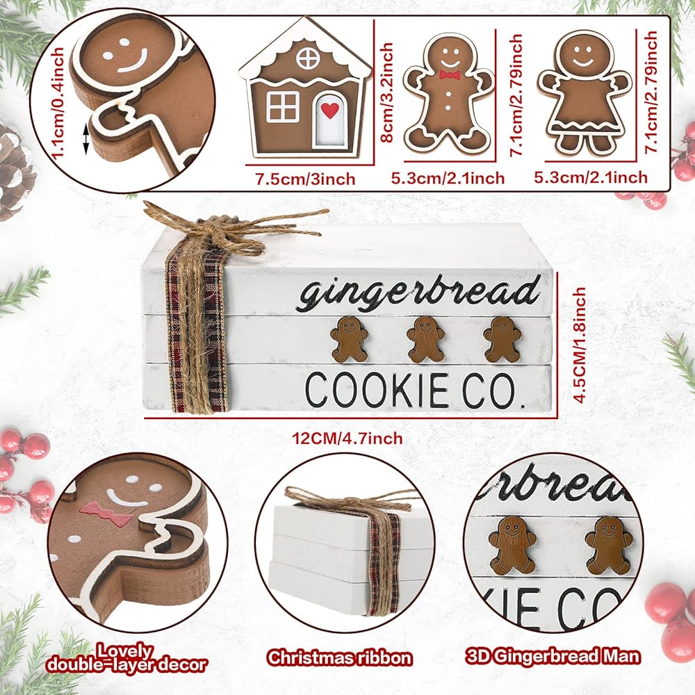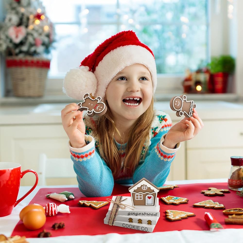 Jetec 6 Pcs Christmas Gingerbread Table Decor Wooden Xmas Gingerbread House Signs Farmhouse Tiered Tray Decor Rustic Mini Book Wood Block Centerpiece Decorations for Home Office Desk Shelf Party Gift