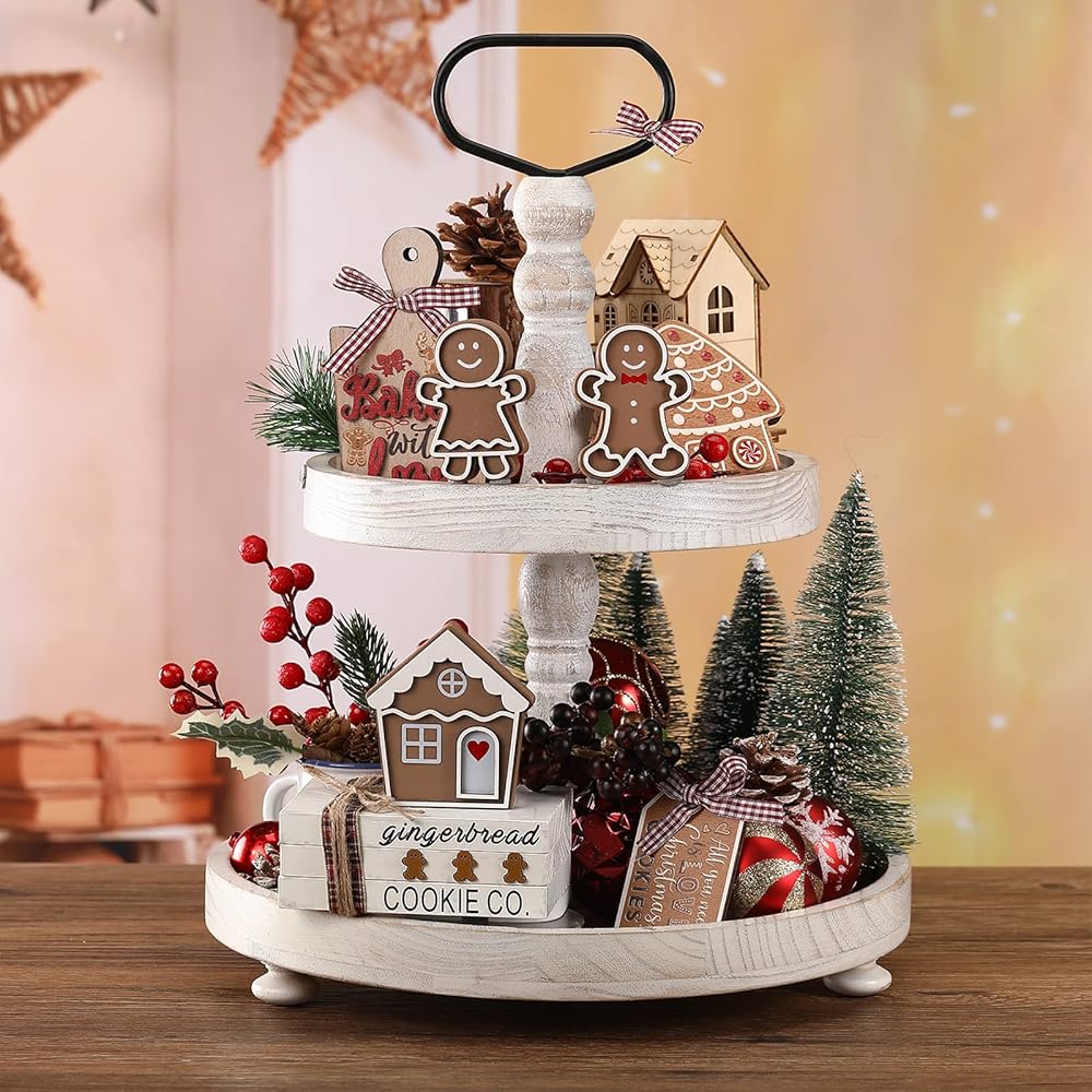 Nice Holiday Gifts: the Christmas decor for tiered tray is a nice gift for family and friends during Christmas, Thanksgiving, Halloween and birthday; The bright color and exquisite design are suitable for spreading the holiday spirit, they will be your tiered tray and holiday gift decorations at home