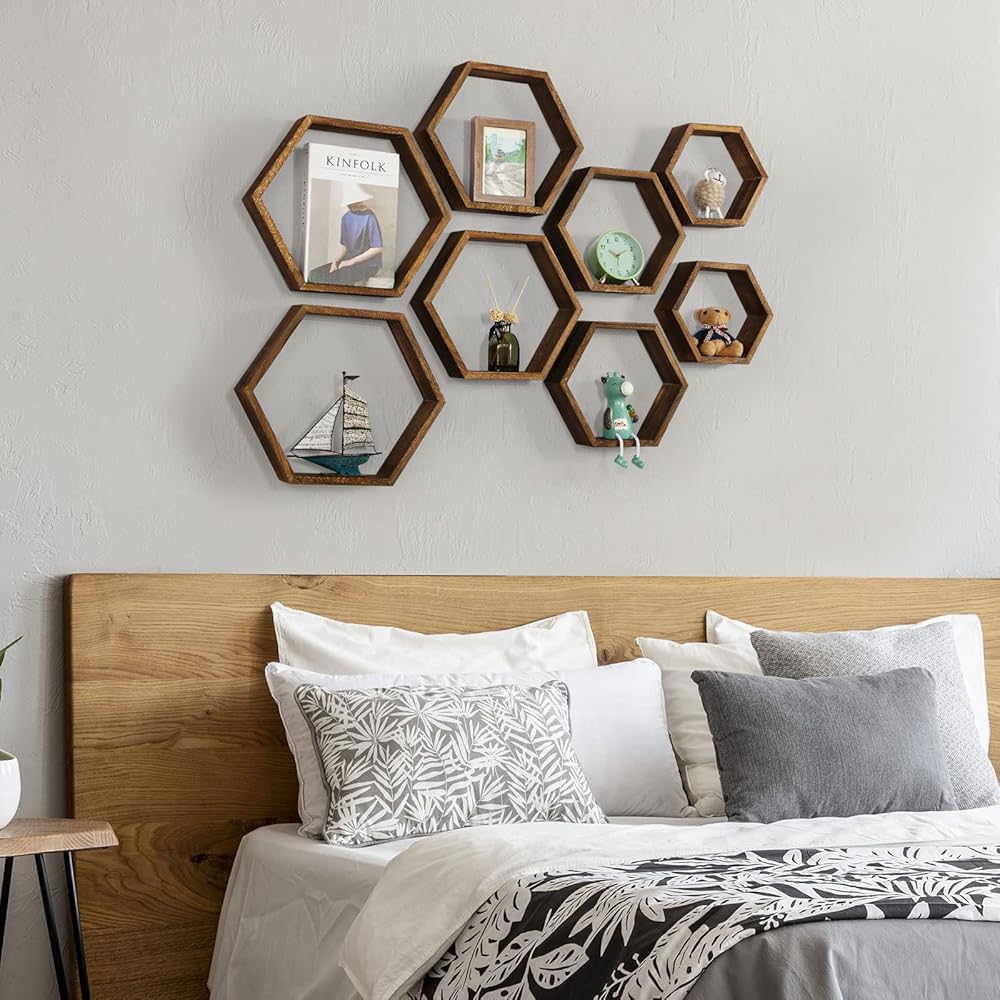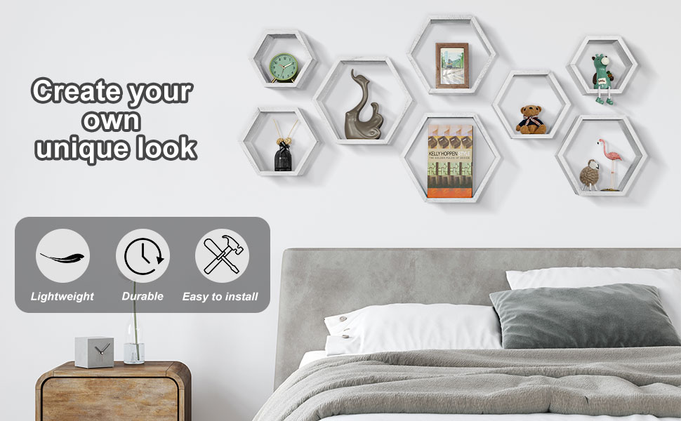 【Easy to Install】Our honeycomb shelves have detailed illustrations and step-by-step instructions. You will understand all the installation details, decide which wall to decorate, and start installing!