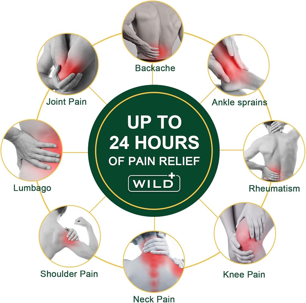 ✅ 【SAFE & EFFICIENT RELIEVE】Knee patch for pain relief have anti-inflammatory property, can safe relief knee pain, reduce swelling and promote circulation, without any addicted and side effects. You will get immediate knee pain relief within minutes by WILD+ pain relief patches.