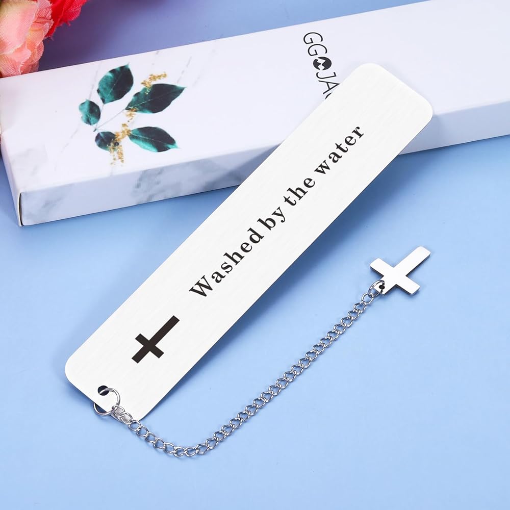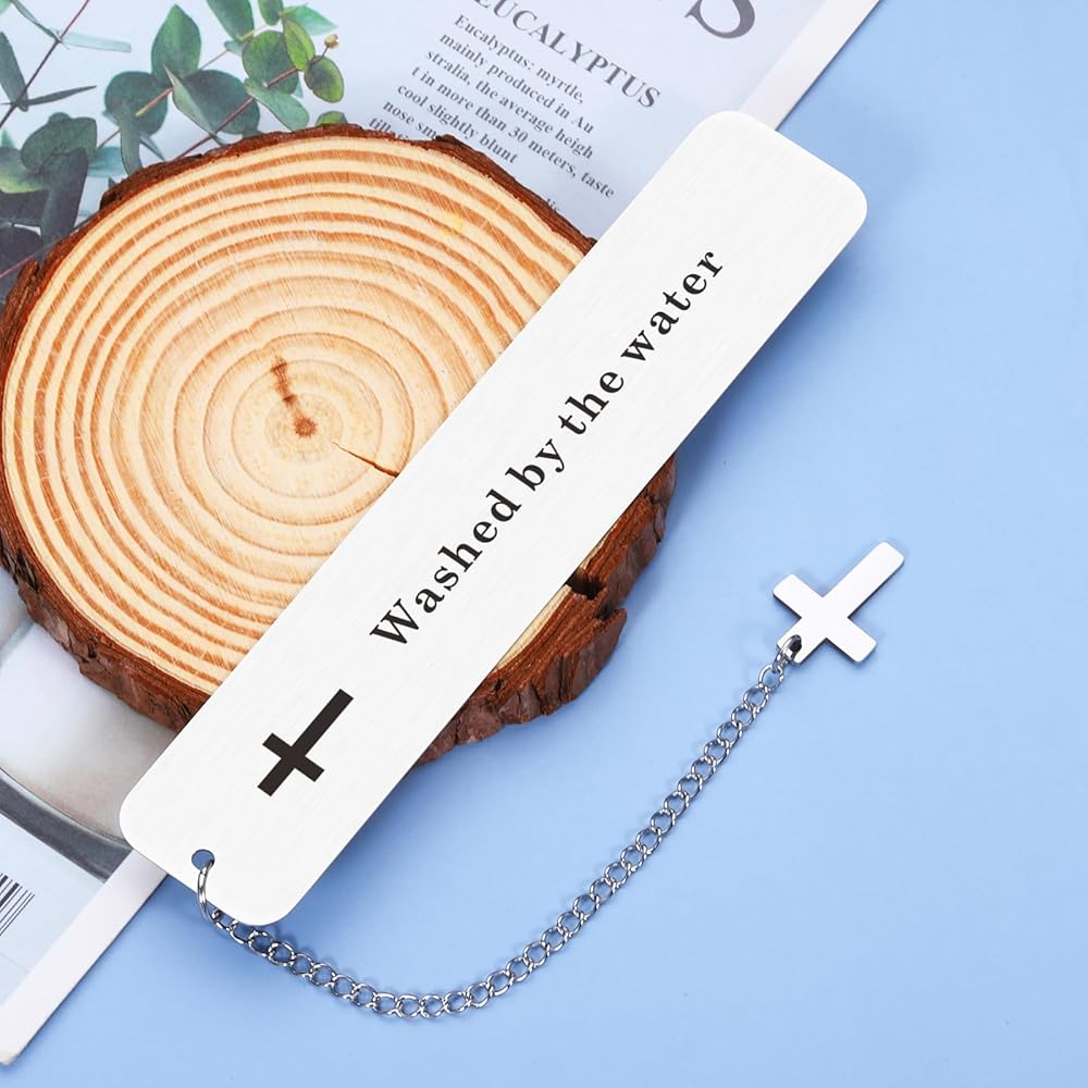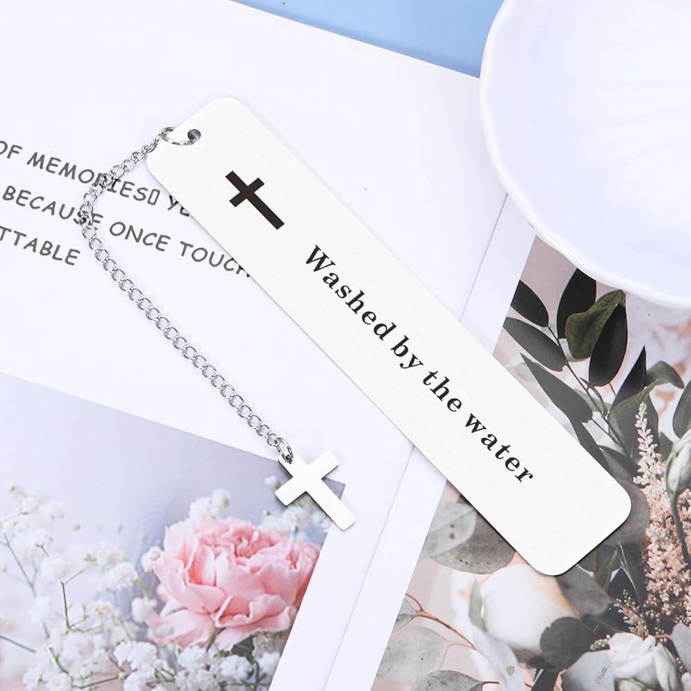 HONOR A SPECIAL MOMENT: Cute bookmark with a chain that with 2023 and cross,engraved with "washed by the water", An exquisite baptism gift for any boy or girl! Commemorate their baptism with this wonderful gift, which will be treasured today and saved as a keepsake for all the years to come.