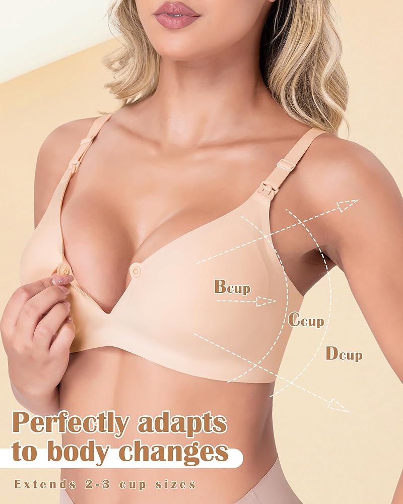 Adjustable Nursing Bra: This bra has no steel rings and is self forming to provide better support and comfort for your breasts.U shaped back with 4 rows of 3 buttons to accommodate 2-3 cup size changes to suit the shape and size of your breasts at different stages of breastfeeding.