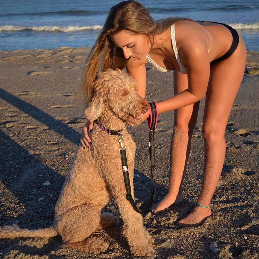 Black Rhino – Dog Leash Adjustable Length (3-5 Feet) with Soft Neoprene Padded Handle | Heavy Duty Lead for Easy Control | Small Medium Large Breeds | Reflective Stitching (Pink/Black)