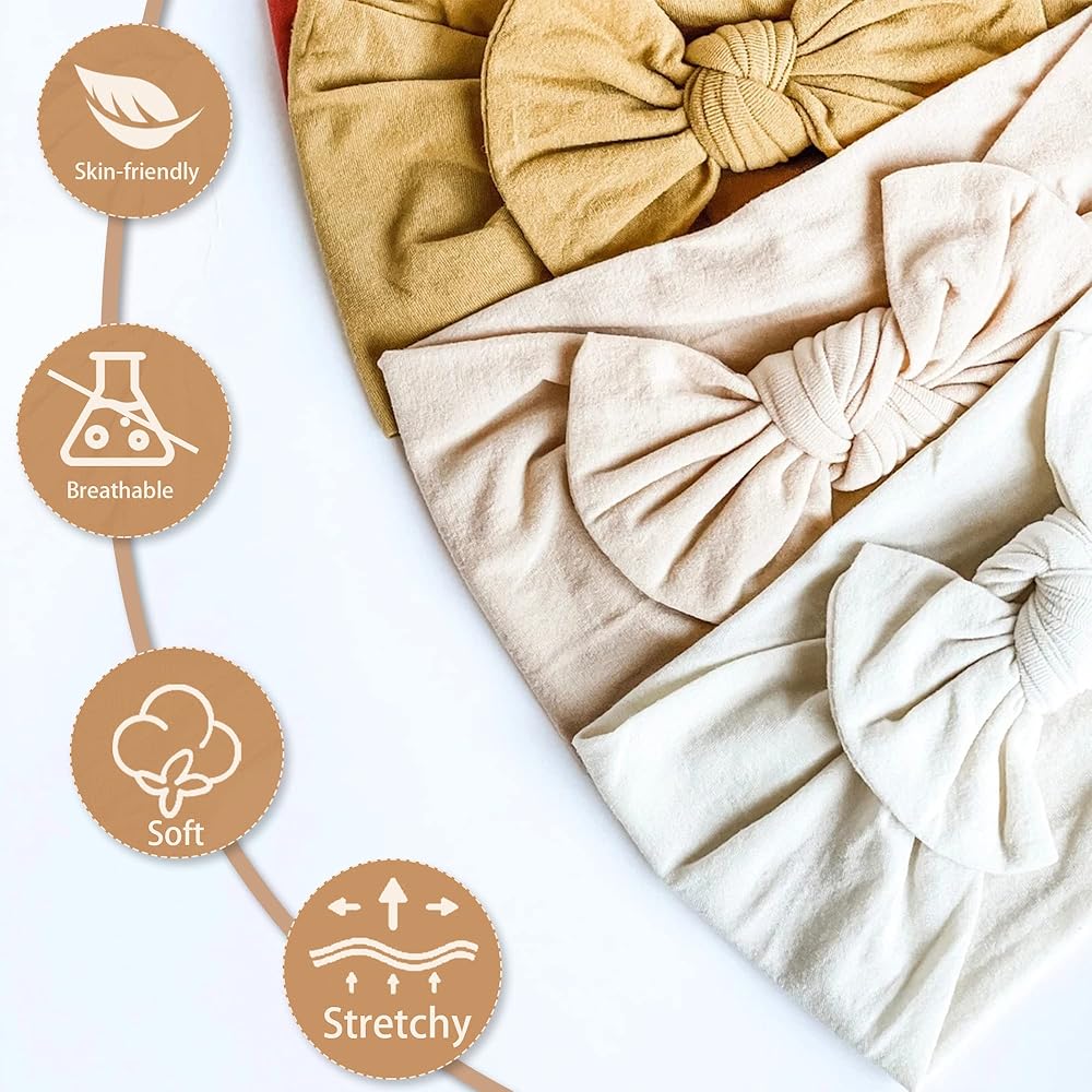 【STRETCHY ENOUGH】 - The baby will have a headache after wearing the headband with poor elasticity.Our baby headbands is easy stretch, Don't worry that the baby will wear it so tight that it will cause a headache,and ideal for all ages from newborn to toddler.
