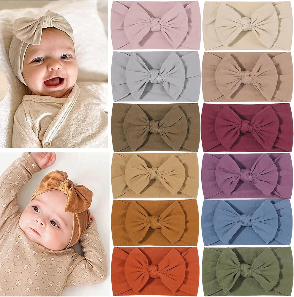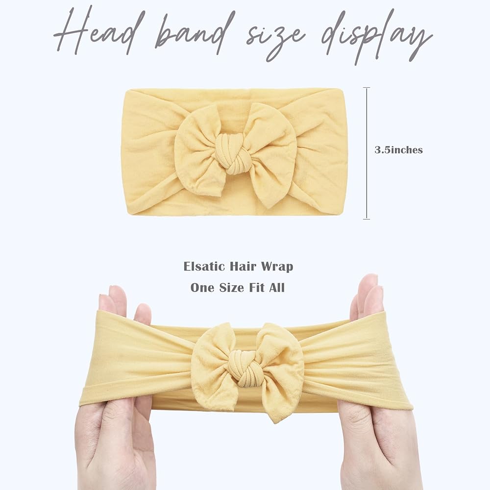 【PACKAGE INCLUDE】 - 12 color nylon baby headband with bows. SIZE: Nylon headband length: 6 inch; stretch length: 12 inch.one size fit all.