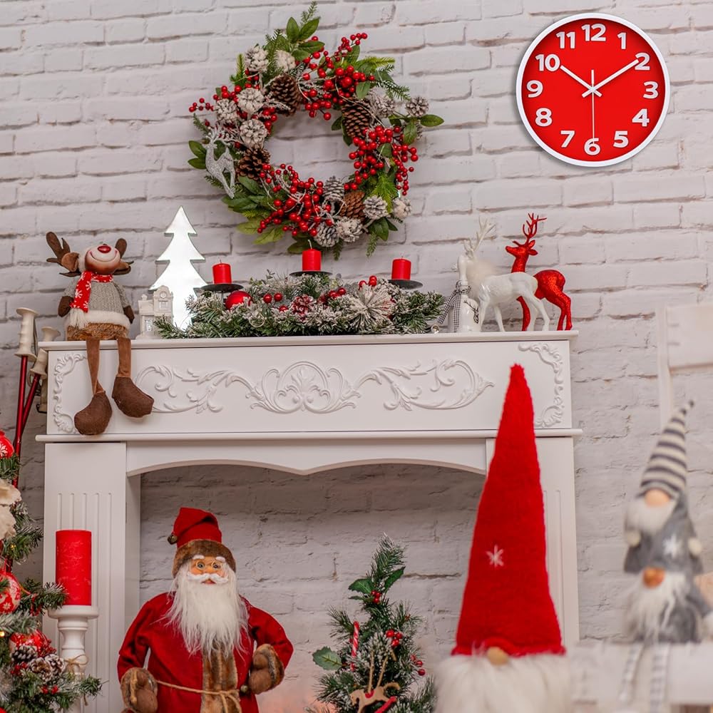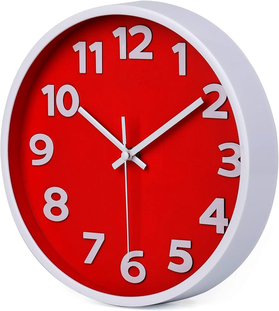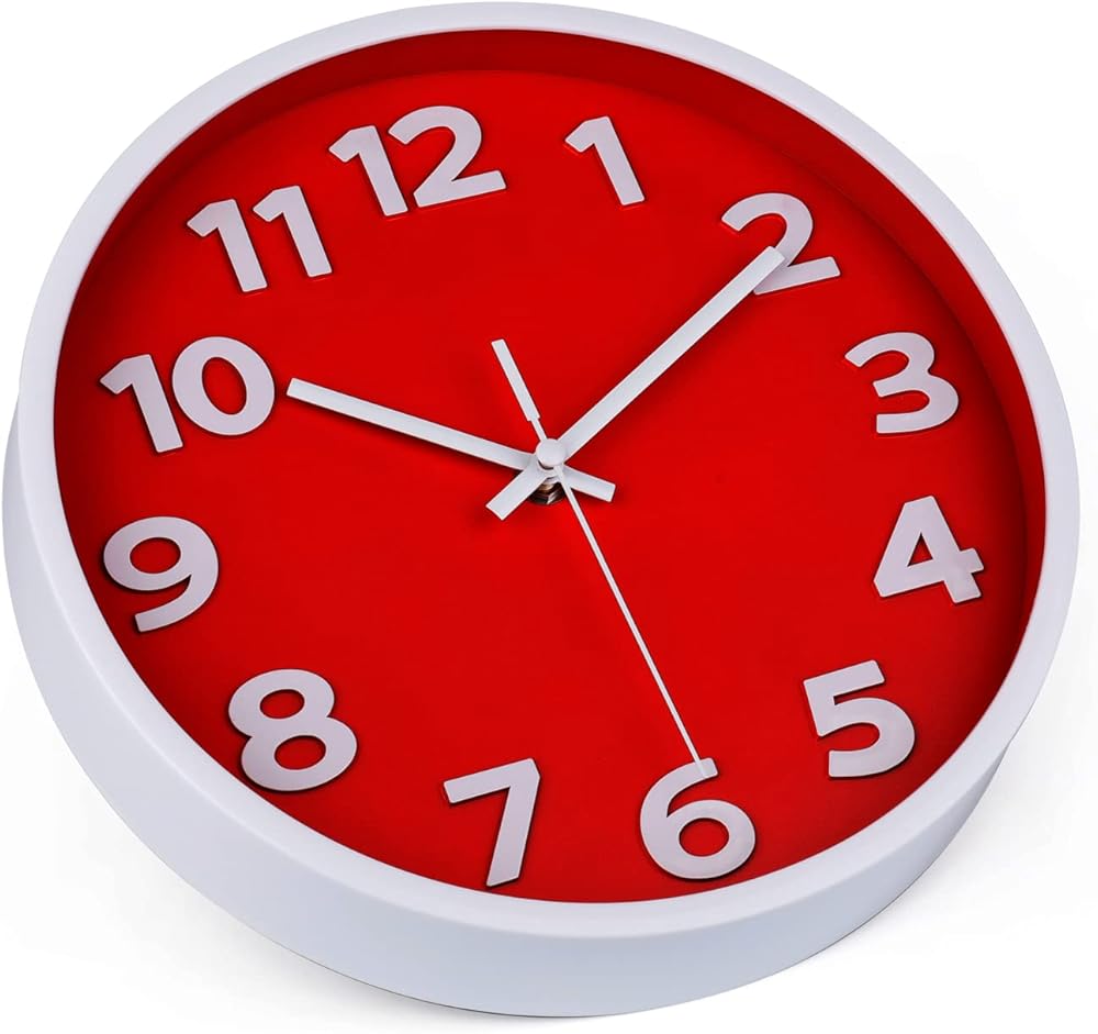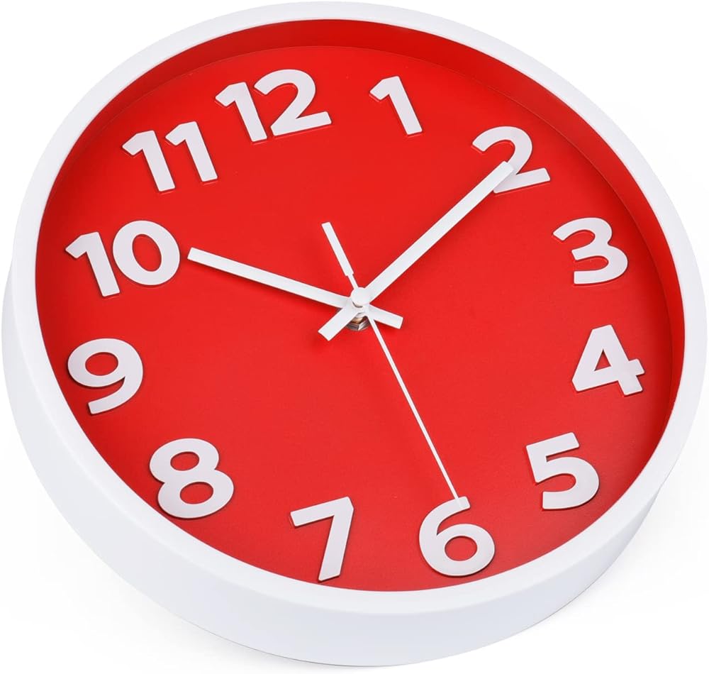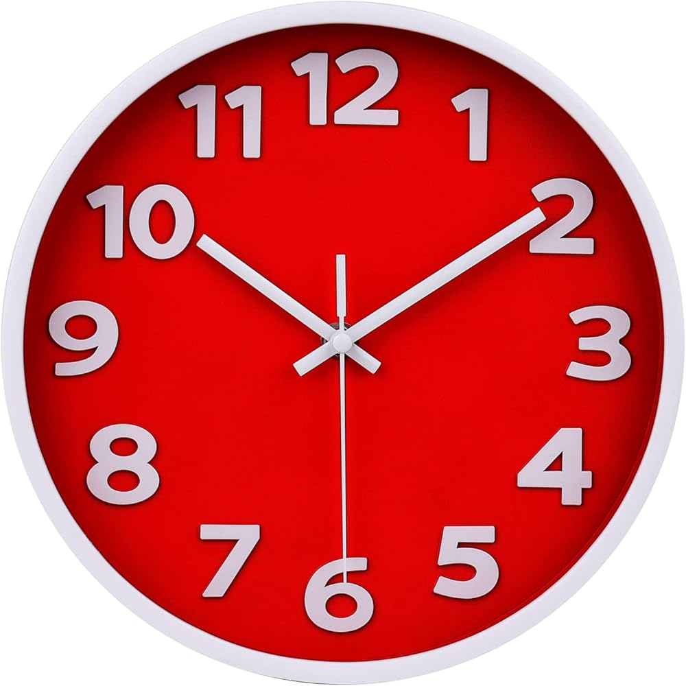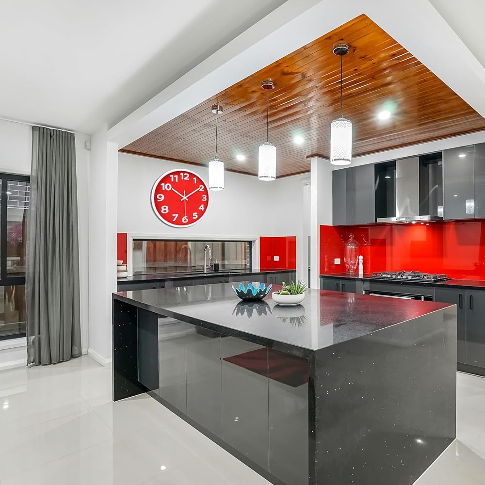 Red Wall Clock with Big Numbers - Silent Wall Clocks Battery Operated 10 Inch Modern Non Ticking Analog Clock for Kitchen, Bedroom, Living Room, Office, Classroom