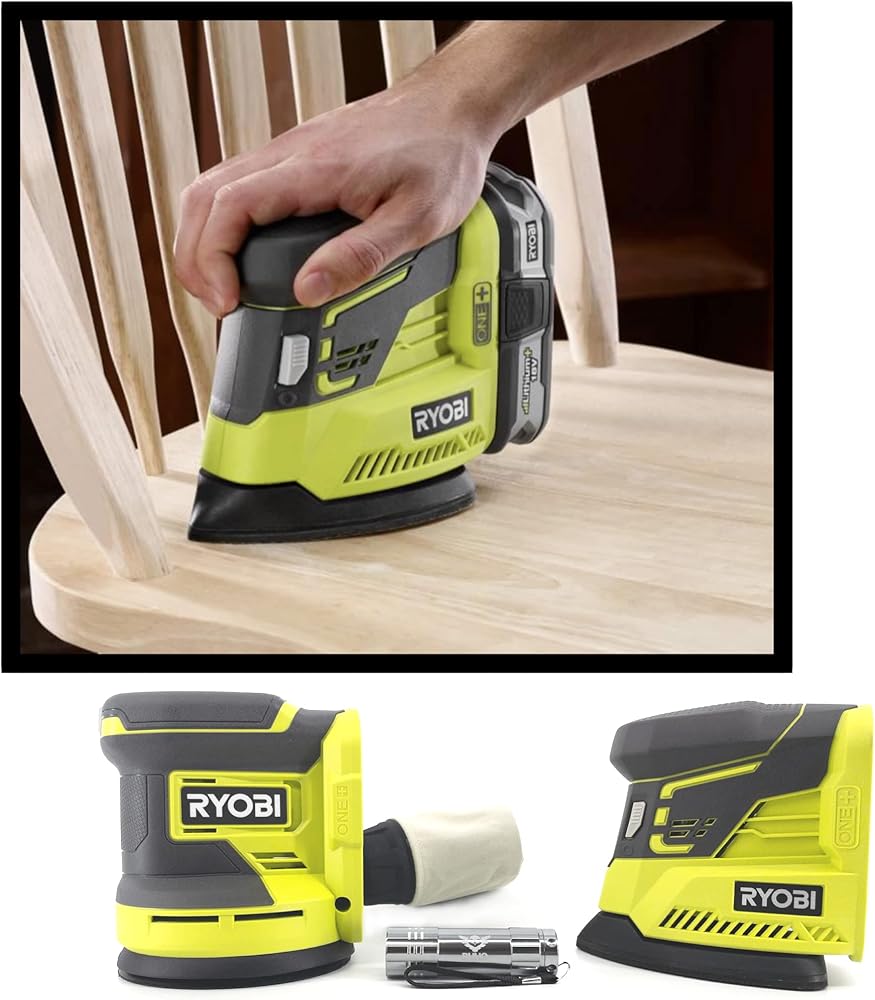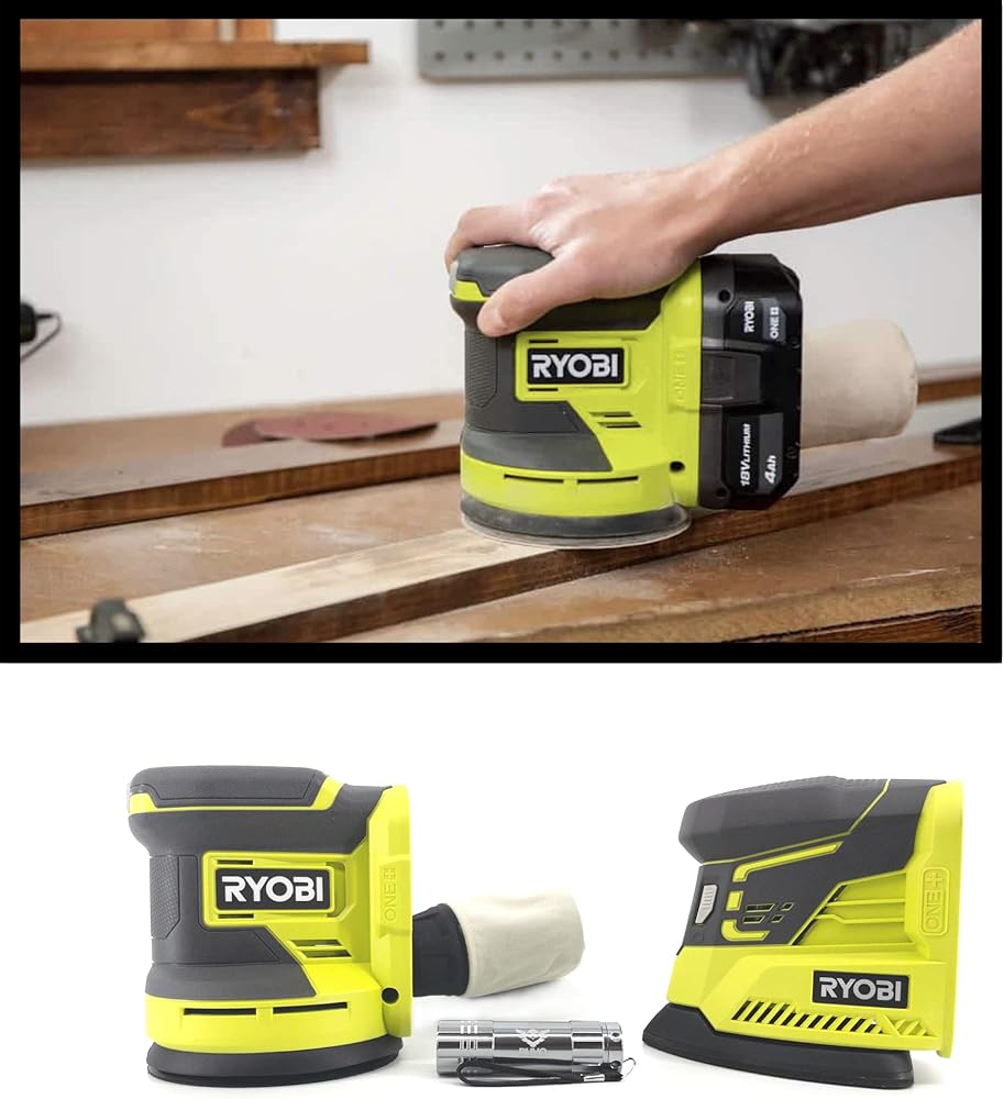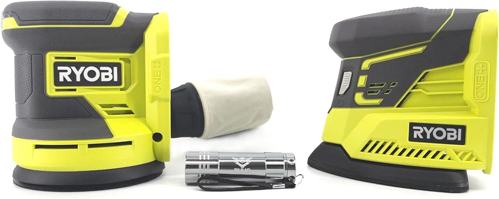 Buho Cordless Power Sander Accessory Bundle -18 Volt with Ryobi 5 Inch Random Orbit Sander Corner Cat Finish Pocket Flashlight (Bare Tool Items No Battery Included)