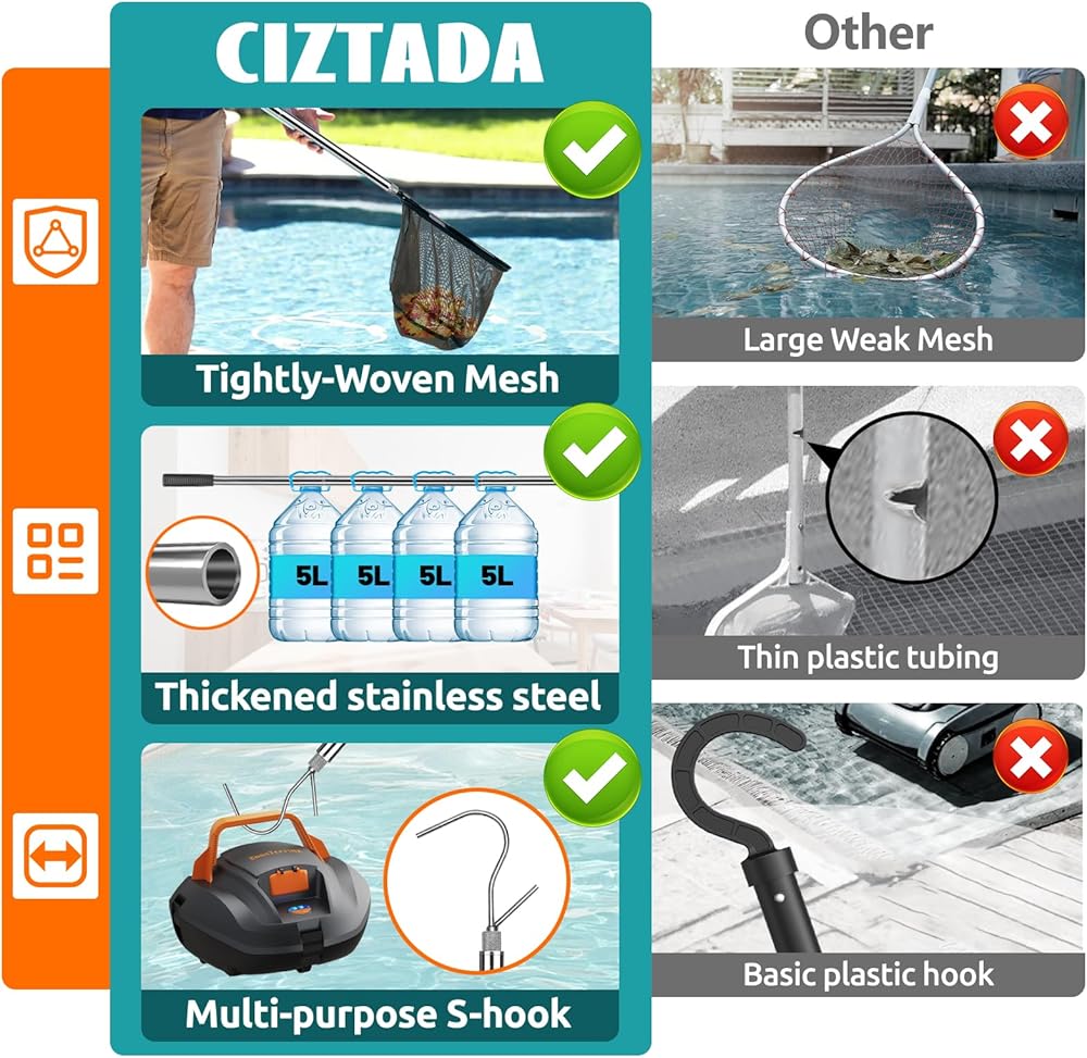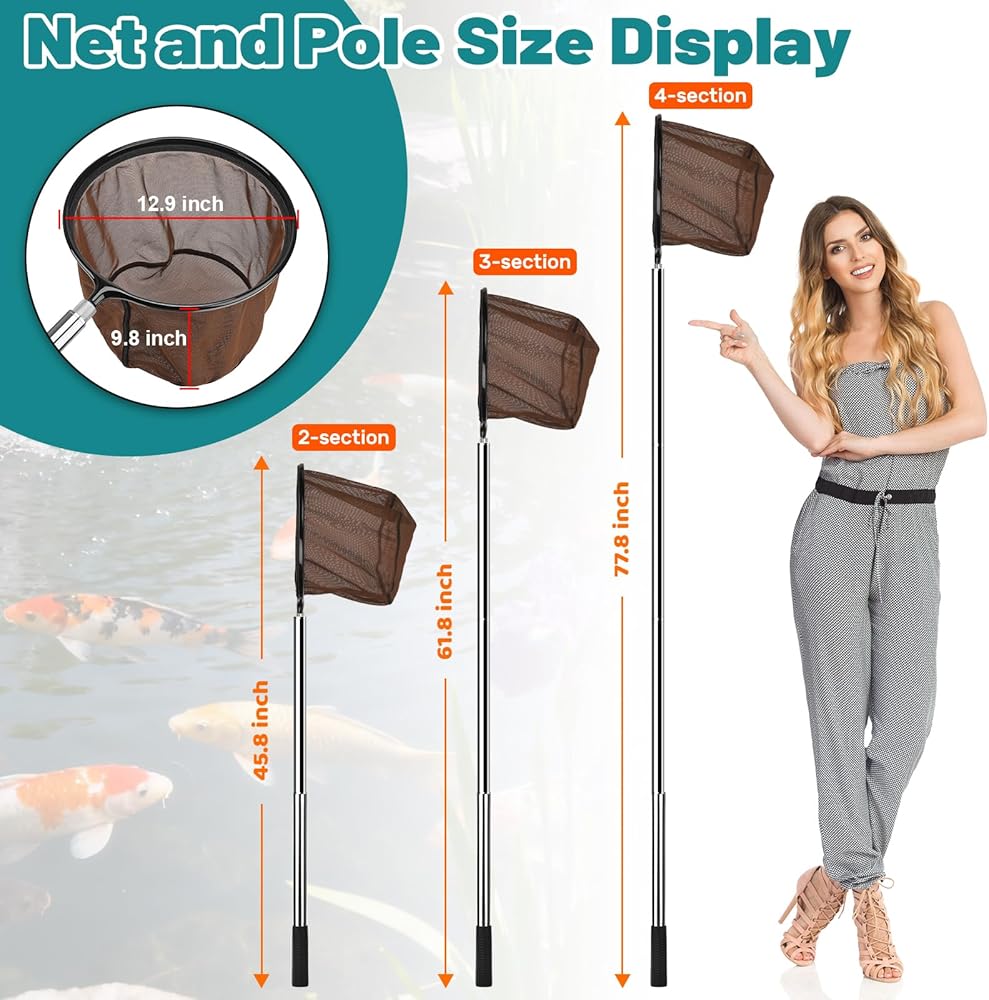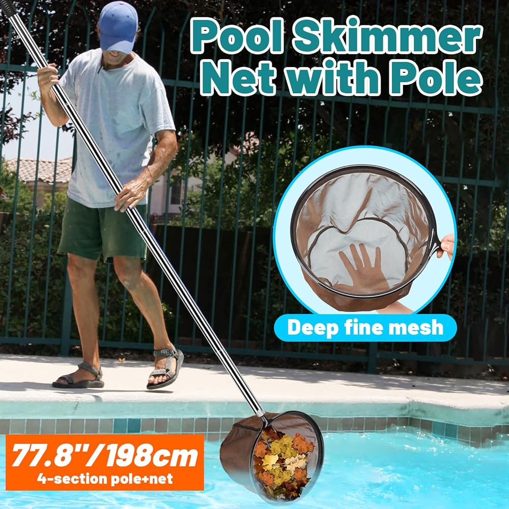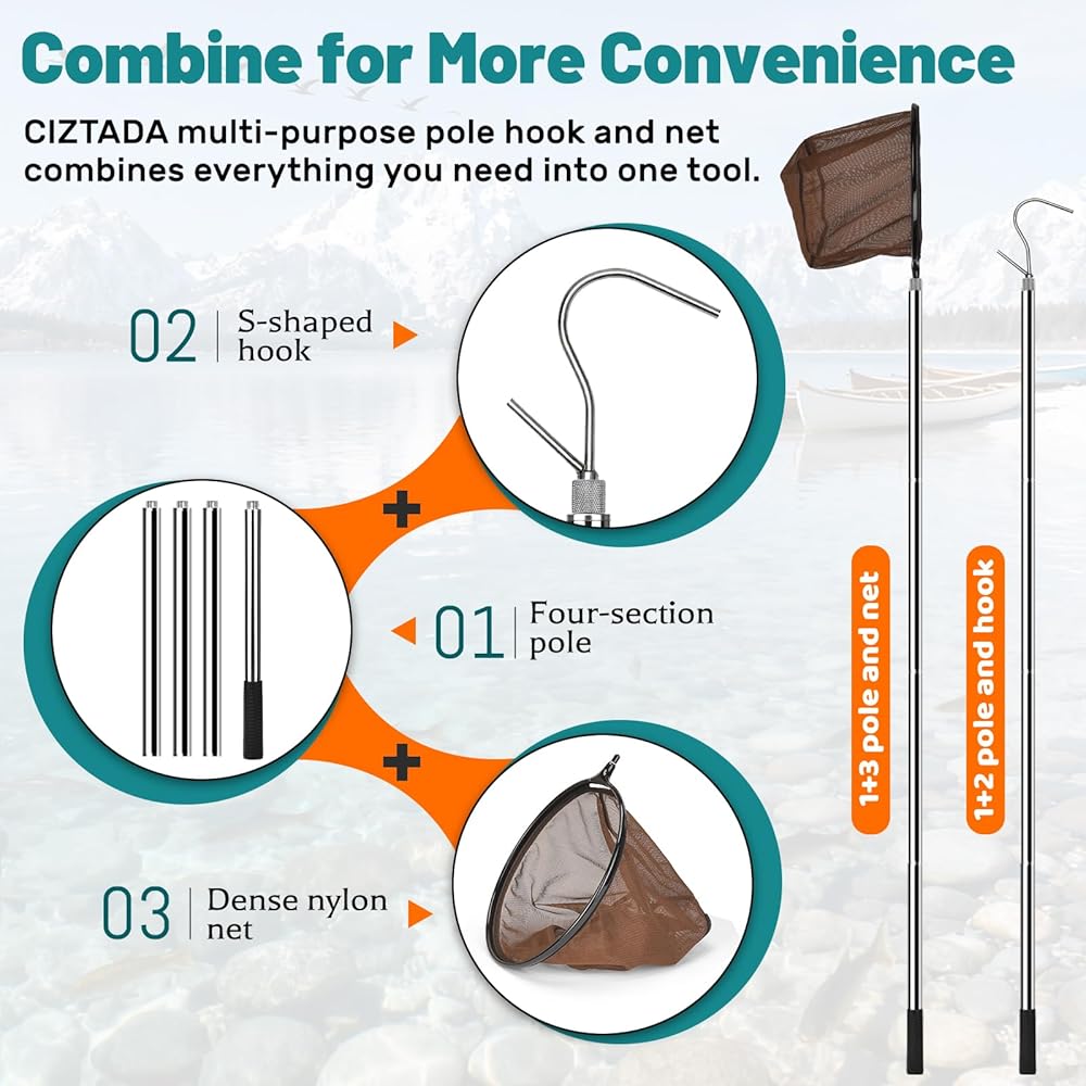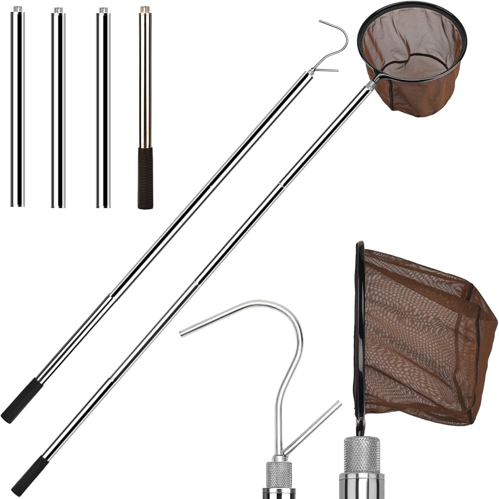 65 Inch Adjustable Pole with Net and Hook Multi-functional Pole Net Hook Tool Pool Skimmer Pole Net and Sturdy Truck Cargo Retrieval Pole Combo for Pool, Pond, Hanging and Removing Heavy Items