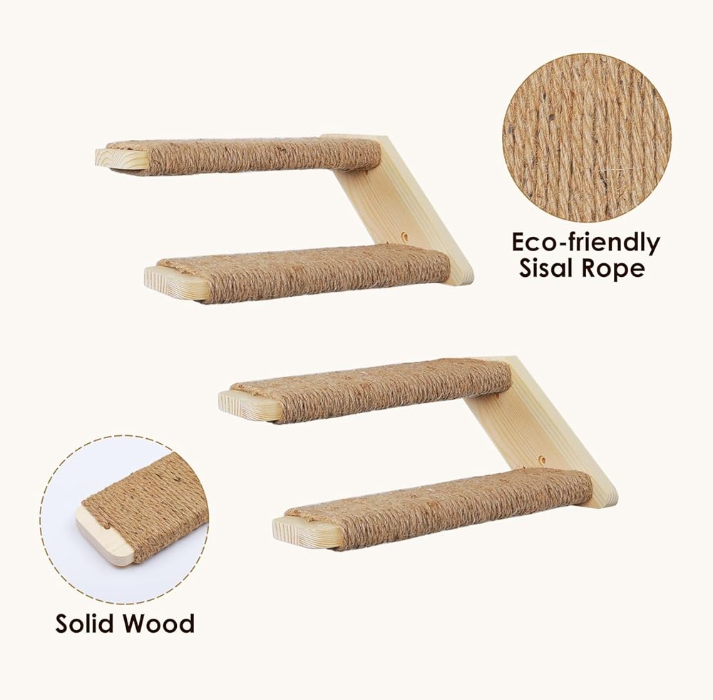 【Natural Material】Our beautiful shelves are made of 100% wood. Don't risk your cat's safety by using cheaper models. With our shelves, you can rest assured that your cat is safe to play. Due to the natural wood, each shelf is slightly different.