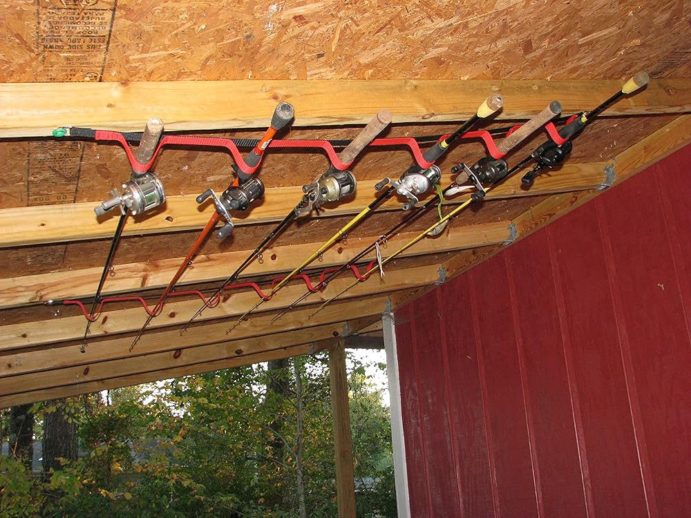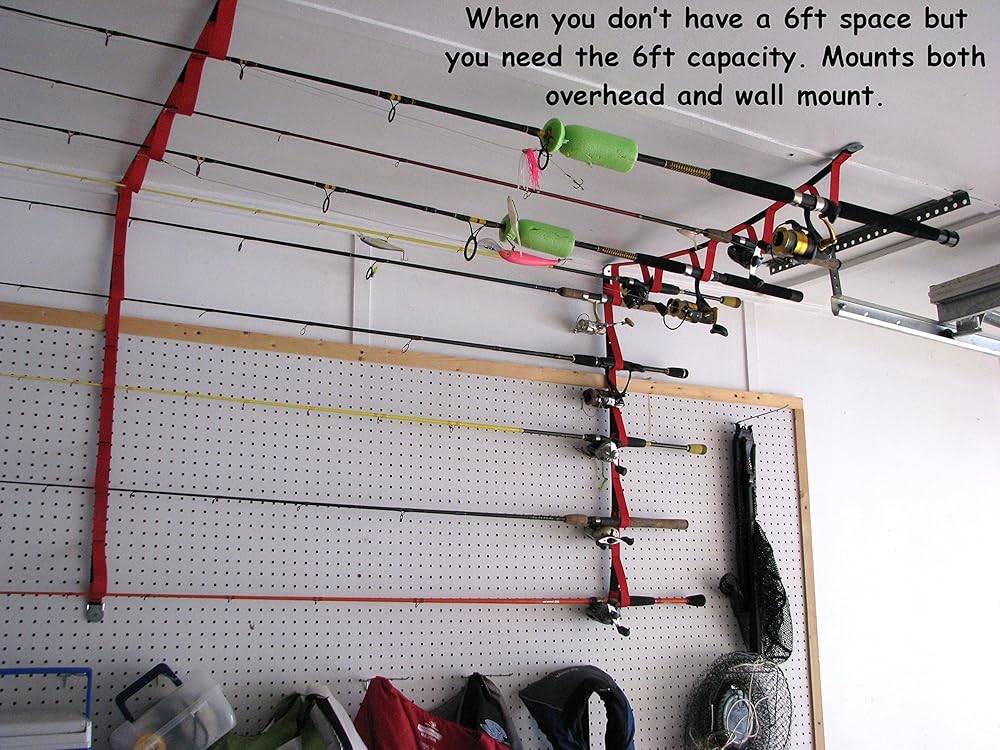 A versatile, stylish rod storage system. The polypropylene webbing will not scratch your rods or damage the eyelets. Mounts on the wall or overhead. Bar tack sewn construction insures durability.