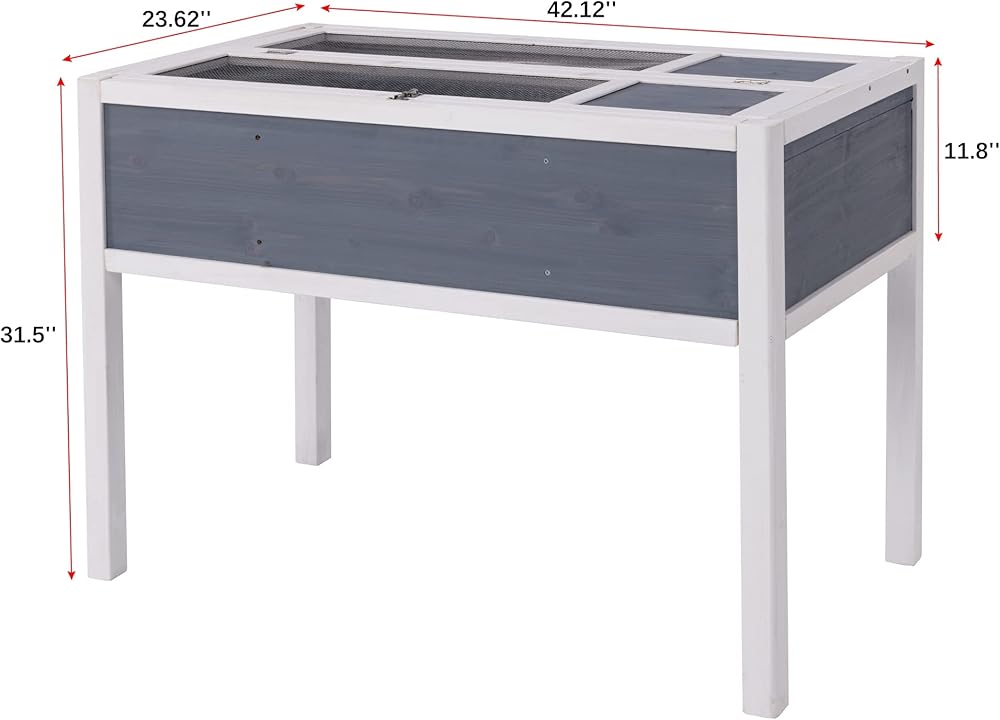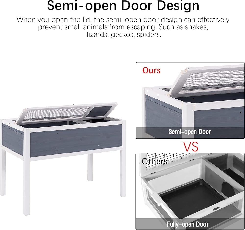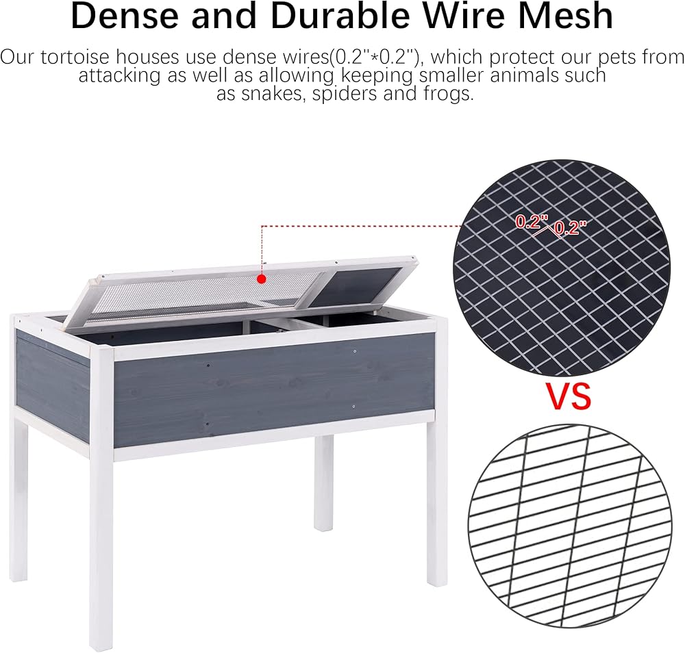 High Quality Material: 42.13”W x 23.62”D x 31.5”H. The turtle cage built with natural fir wood and eco-friendly varnish, solid and durable grate and latch, make your tortoise safe. Necessary hardware and instruction provided. If you have any questions, please do not hesitate to contact us. We will reply it within 24 hours.