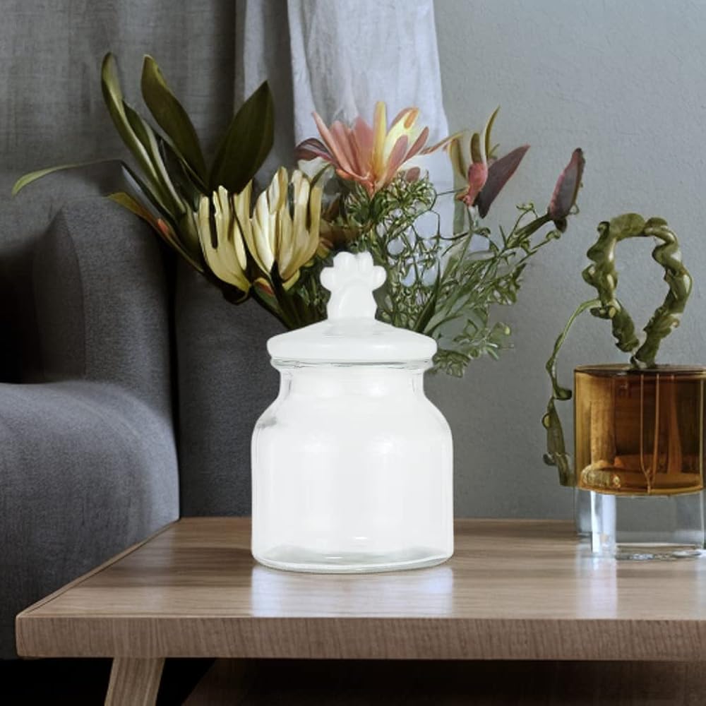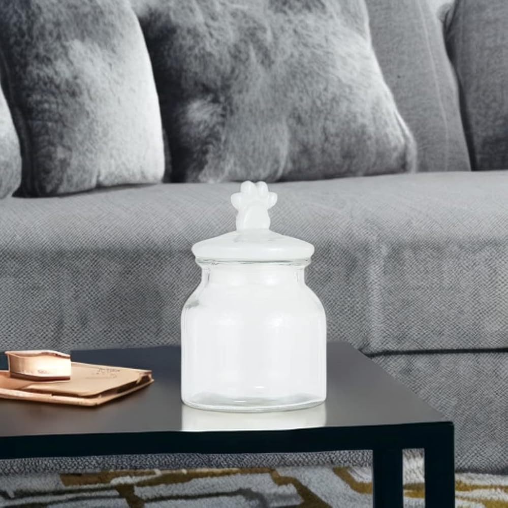 Introducing the Amici Pet Cosmopawliton Glass Canister White, the perfect solution for keeping your furry friend's treats fresh and easily accessible. Keep your pet's food fresh and dry in this large glass jar with an airtight lid featuring a silicone ring. The generous capacity of 52 ounces allows you to store a variety of dog treats, accommodating the needs of both large and small dogs. Add a vintage touch to your kitchen countertop with this cute dog treat jar, featuring a charming paw figurine on the lid. The paw handle on top allows for convenient access to treats while keeping them sealed and secure from your pet—this pet treat jar ensures that your good boy or girl always enjoys fresh and delicious treats. Not only is this glass dog treat jar practical and stylish, but it is also made with your pet's safety in mind. Crafted from sturdy and food-safe glass, it provides a durable storage solution for your pet's treats. The rubber-lined lid ensures that hard or soft treats, dental sticks, or kibble remain moisture-free and delicious. Plus, it's easy to clean—simply place it in the dishwasher for hassle-free maintenance. Elevate your home decor with this versatile dog cookie jar. It's not just for the kitchen; it can also be displayed on your office desk, pet station, console table, or anywhere you treat your pet. The Amici Pet Cosmopawliton Glass Canister white is a perfect gift for any pet owner who wants to keep their dog's treats fresh and their home stylish. Order yours today and give your four-legged companion the treat storage they deserve!