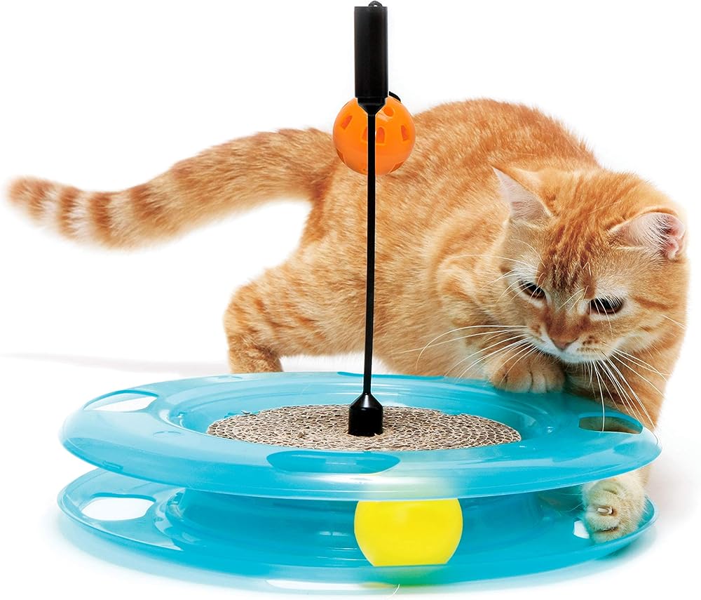 After your cat takes the Ball Track Spinner for a spin, you might think it's the only toy in the house. Built-in feathers pique your pet's curiosity, inviting the playful swat or two needed to get things going. After that every swipe of the paw powers the jingling ball along a track, bouncing back and forth to set your cat into a joy-filled frenzy. No batteries required – it's powered only by play. Your furry sidekick is sure to enjoy taking this toy for a whirl!