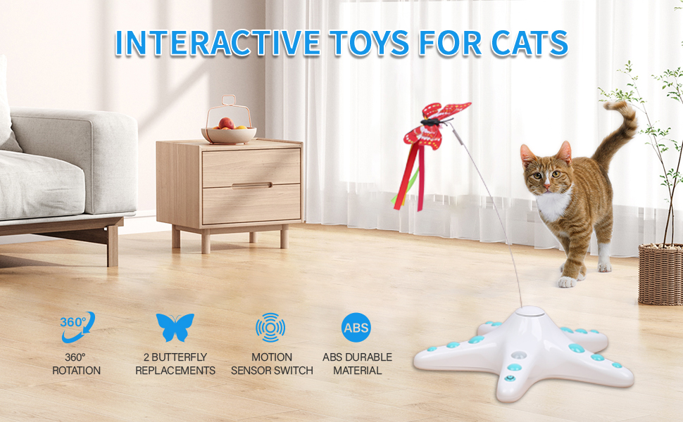 【360 Degree Rotation】The automatic spinning butterfly rotates in 360 degree which brings so much fun for cats to chase and play. Keep your feline friend entertained for hours.