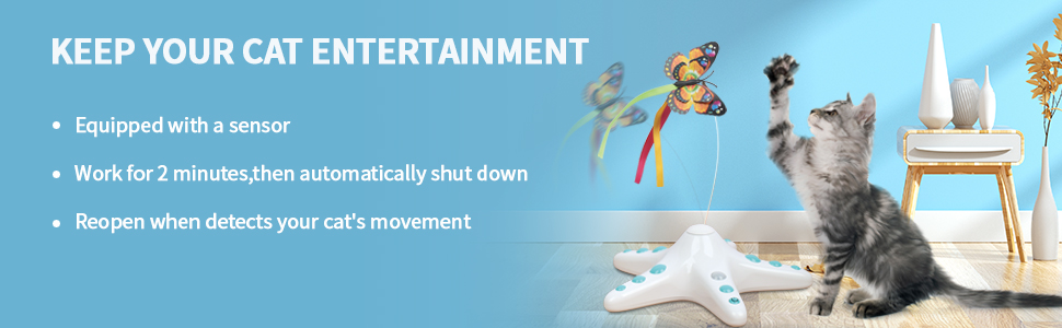 【2 BUTTERFLIES REFILLS】Automatic cat toys provide 2 replacement butterflies that can resistant to scratching and biting to prevent cat scratching or accidental damage.