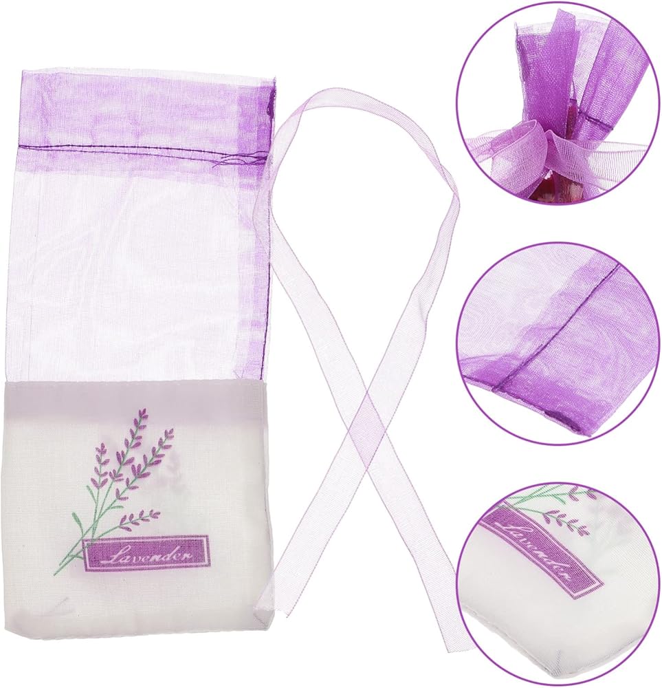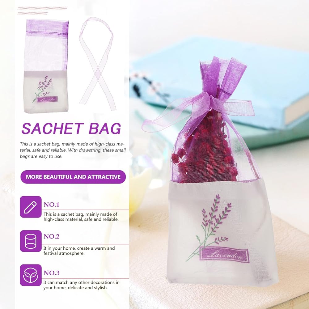 Material: Top half is organza, bottom half is premium cotton-ramie fabrics with duplex printing for the lavender flower pattern, our handmade bags are beautiful and durable, ideal for lavender buds, rose buds, or candy package.