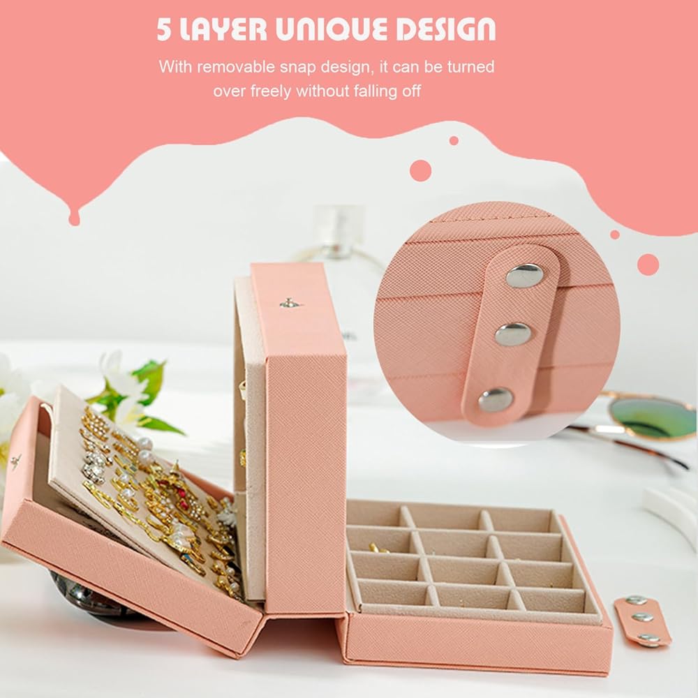 Jewelry boxes for women, Travel Jewelry Case,Portable Jewelry Storage 5-Layer PU Leather Travel Case for Earrings, Necklaces, Bracelets, Etc Girls Gift