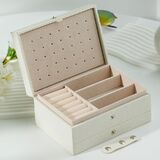 Introducing our Portable Travel Jewelry Boxes – the sleek solution to keep your jewelry organized and protected, at home or on the move. Compact at 6.3 x 4.33 x 3.15 inches, it fits drawers and enhances aesthetics on any surface, ensuring neatness and preventing tangles while traveling.