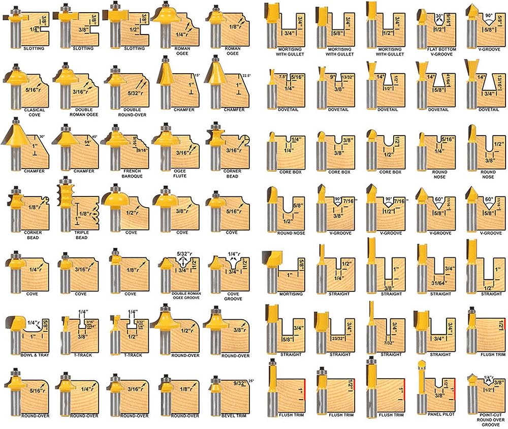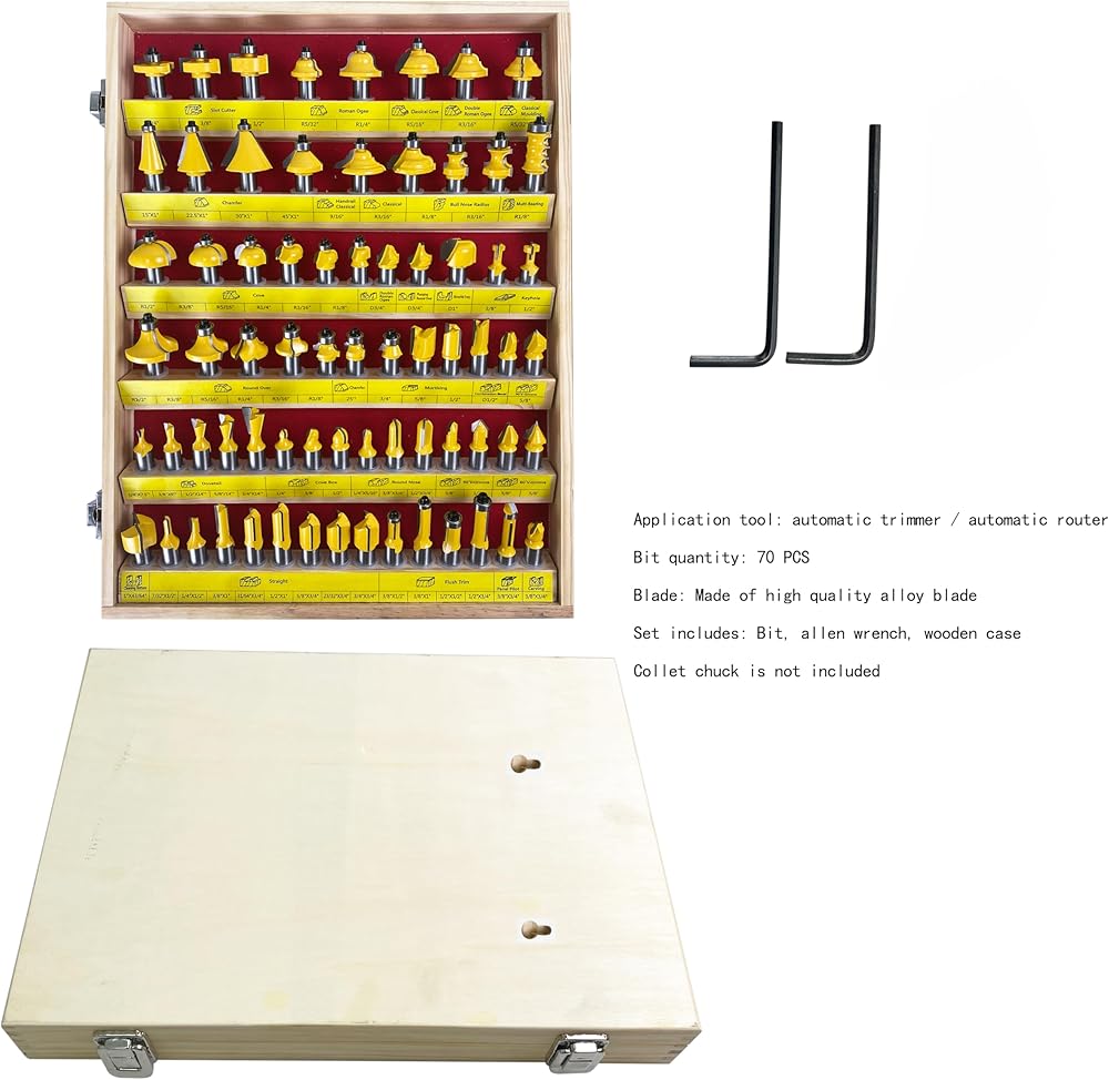 [Design]: This 70 Piece Shank Router Bit Set comes with all 1/2-inch round shank bits that will fit any 1/2-inch router shank