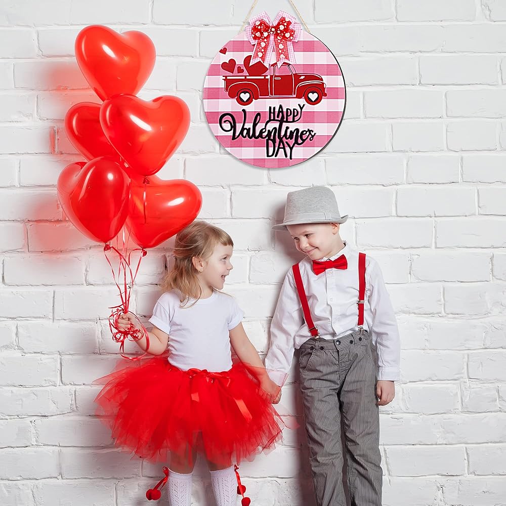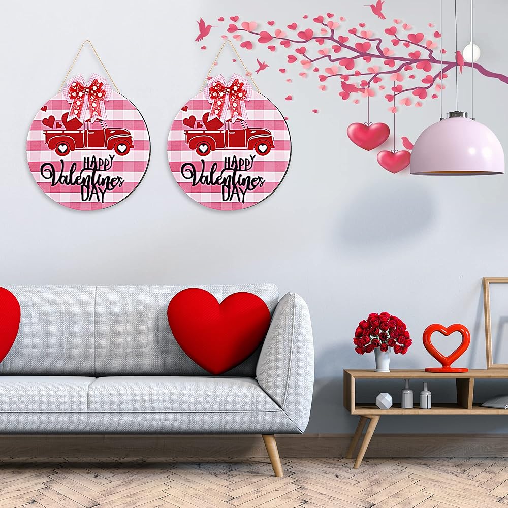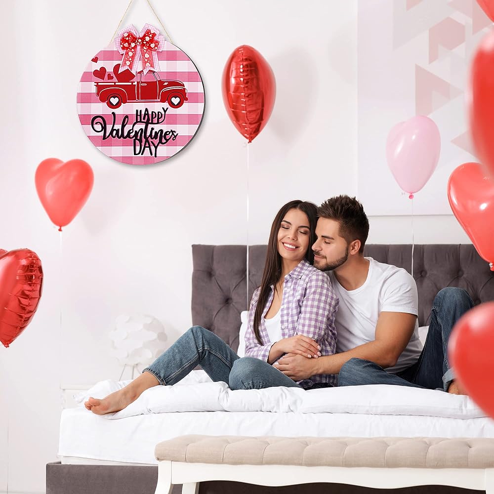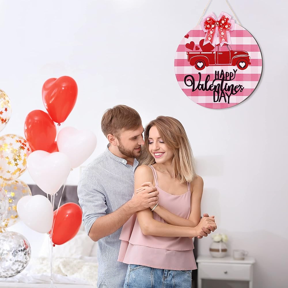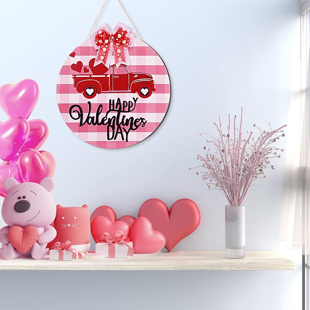 Valentine's Day Design: The Valentines day door sign takes thick wood as background with multiple classic elements, such as pink and white buffalo plaid, the letter of Happy Valentines Day, hearts on the truck, we also added the beautiful bows, makes it more classic and attractive, which can enhance the festival atmosphere.