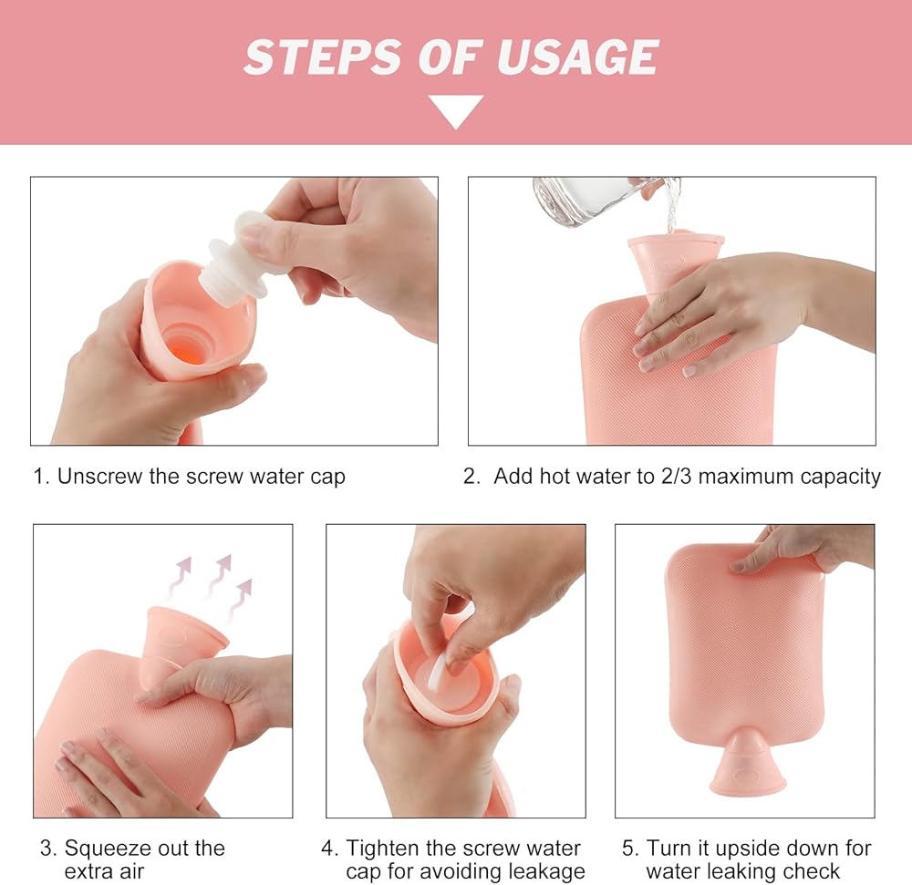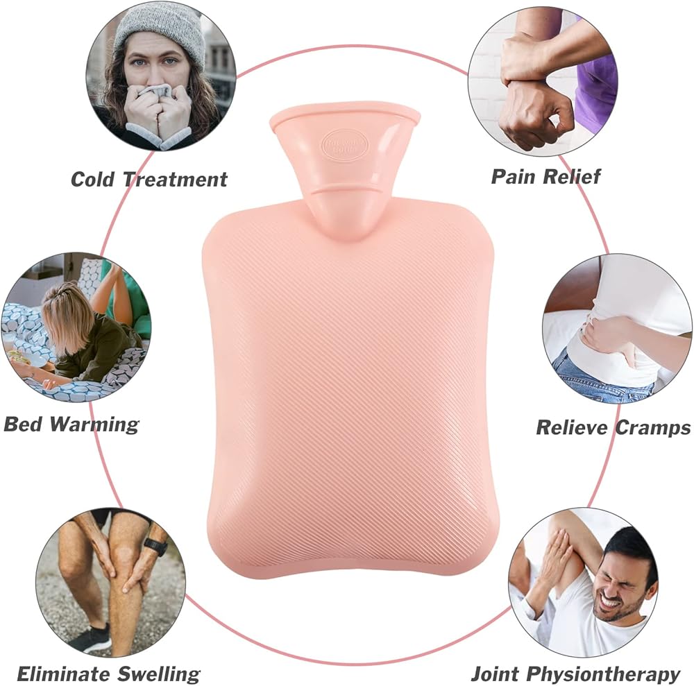 Hot Water Bottles - Natural Rubber 1 Litre Capacity,Premium Hot Water Bag for Pain Relief, Back Pain, Period Pain, Waist, Feet,Neck and Shoulders (Pink)