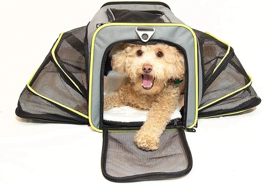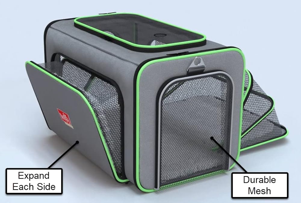 The ultimate pet carrier for cats, dogs and small pets up to 20 lbs! Multipurpose carrier and bed with travel features that are TSA & Airline Approved! Meets most major airline size requirements, ensuring hassle-free travel with your furry friend. Expandable Walls & 4-Door Design: The versatile carrier provides extra room and multiple entry points, enhancing comfort and accessibility for pets. Rechargeable LED Light: Illuminates the carrier for added visibility and safety during nighttime walks or airport navigation. Ultra-Soft Bed with Removable Padding: Offers ultimate comfort during long trips, and easy cleaning with washable, removable cushion. Suitable for Various Pets: Perfectly designed for cats, small dogs and puppies up to twenty pounds, providing a comfortable travel experience. Makes a great gift for men and women who have small pets! Whether your pet is traveling to the vet, in a car or on an airplane, this carrier has it all!