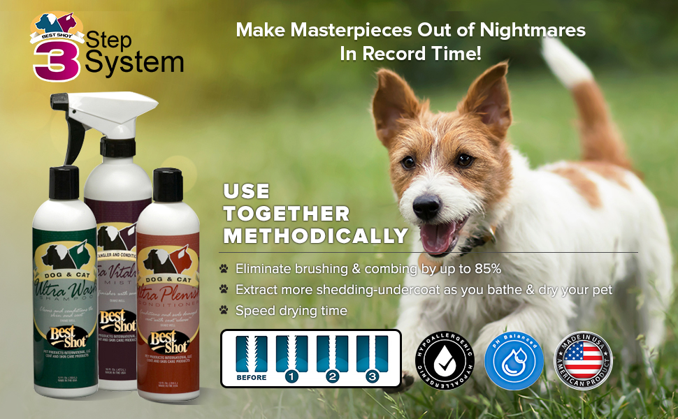 Ultra Wash Shampoo: Best Shot Ultra Wash shampoo is enriched with protein and special hydrating conditioners that hydrate the pet coat and nourish the skin. The hypoallergenic formula does not damage your pet's skin