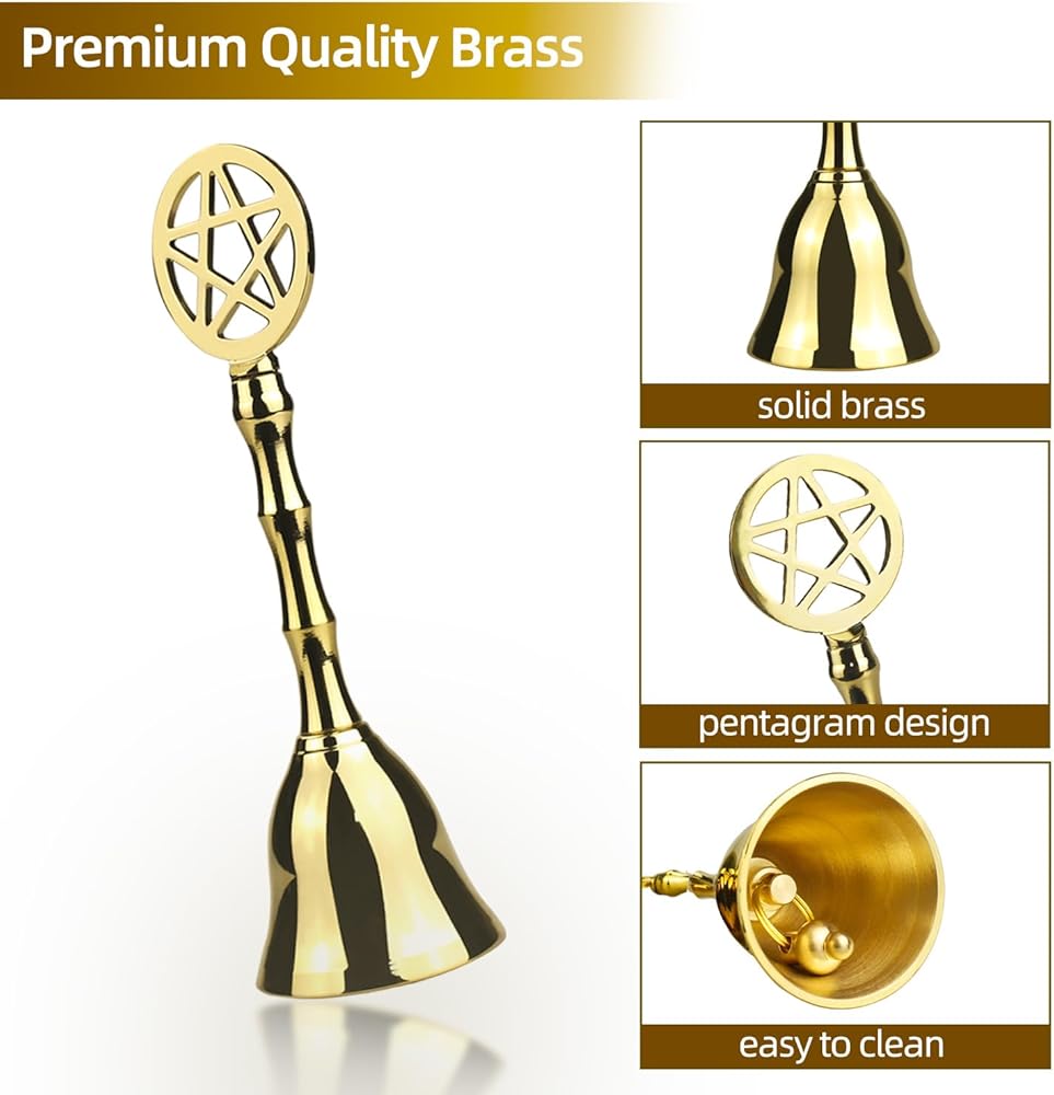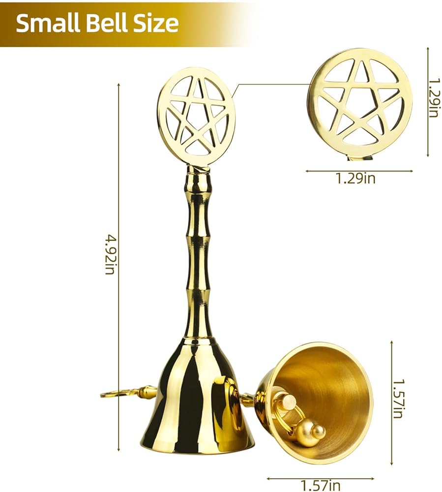 【PROCUCT DIMENSION】-Our pentagram brass bell is 4.92 inches tall with a diameter 1.57 inches, 0.17 lb weight, which is to portable too carry.