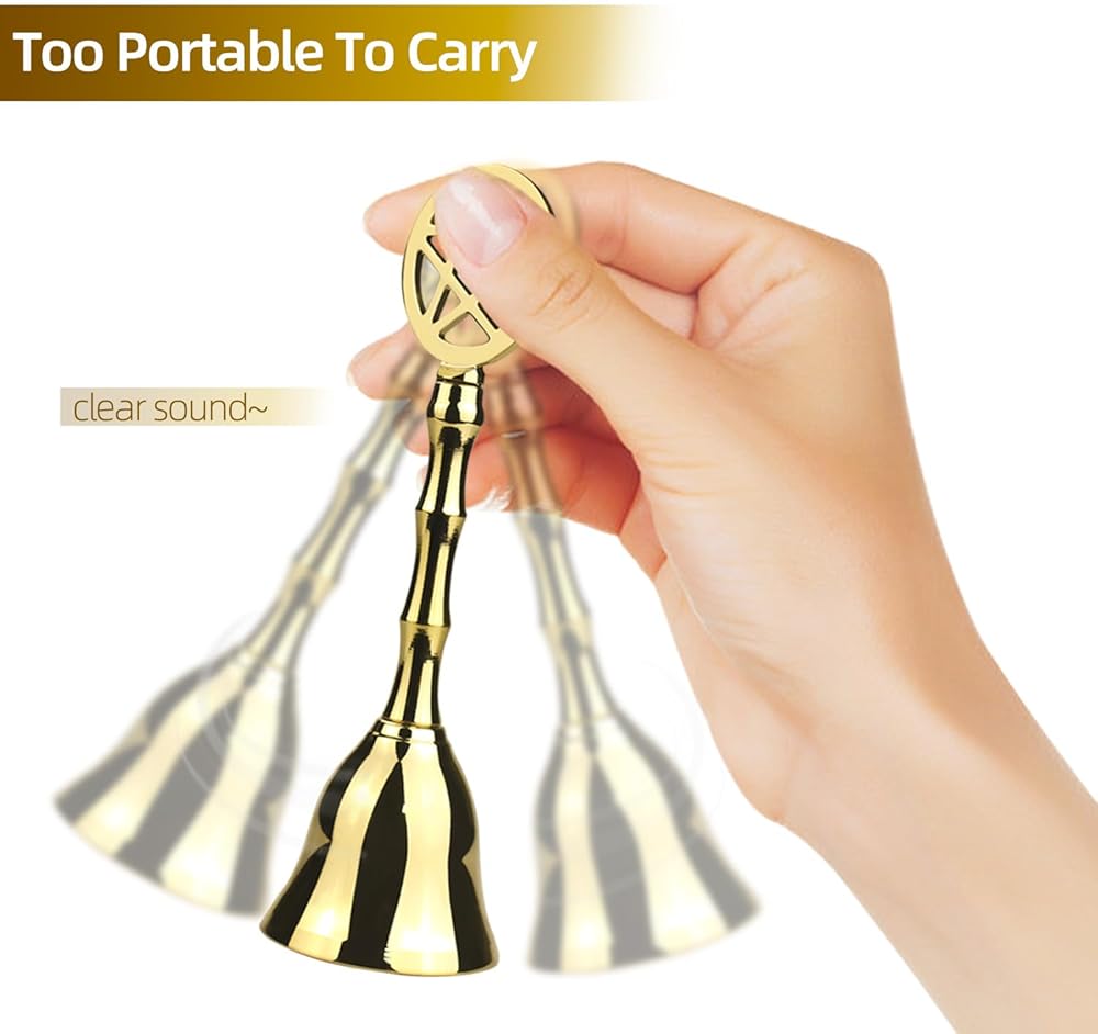 【PENTAGRAM DESIGN】-Designed with pentagram symbol, the small bell is made of premium solid brass which can make extra loud and clear ringing when slightly shaking it. The classroom bell is not only comfortable to hold, but also durable and hardness enough.