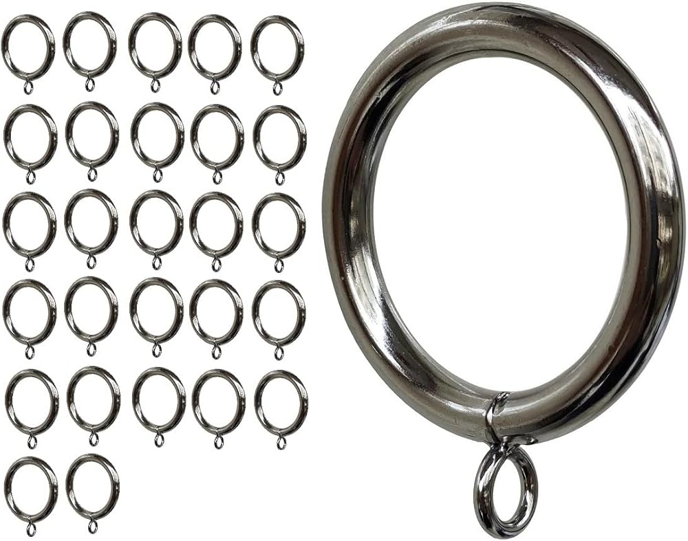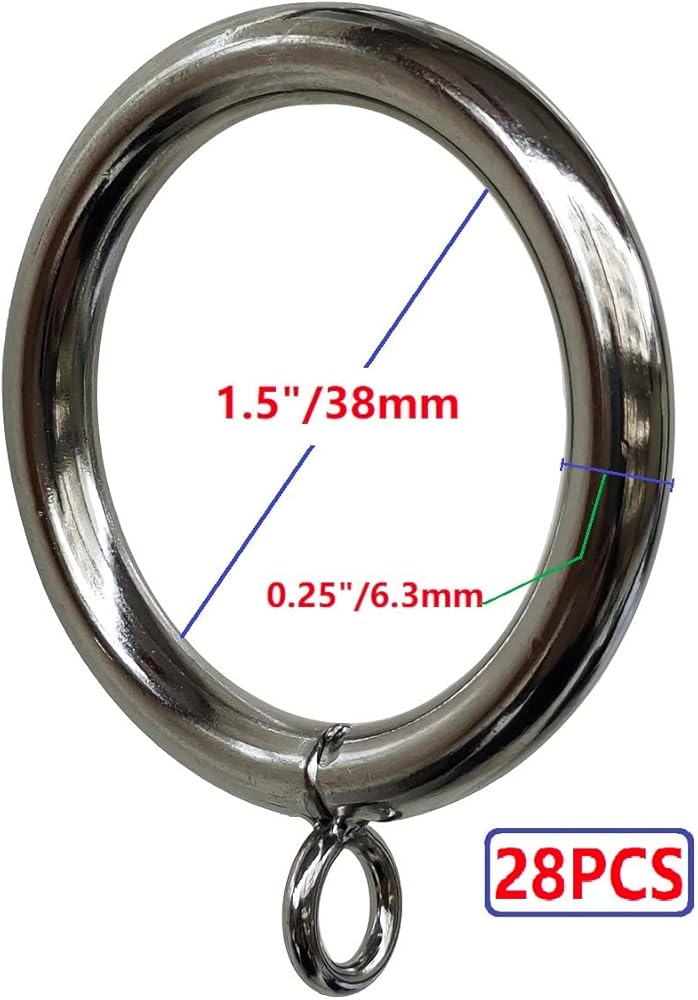 Curtain Ring Metal 28-Pcs 1.5 Inch Inner Diameter with Eyelets Fit Up to 1 1/4-Inch Rod Large Wire Diameter (Satin Nickel-28Pcs)