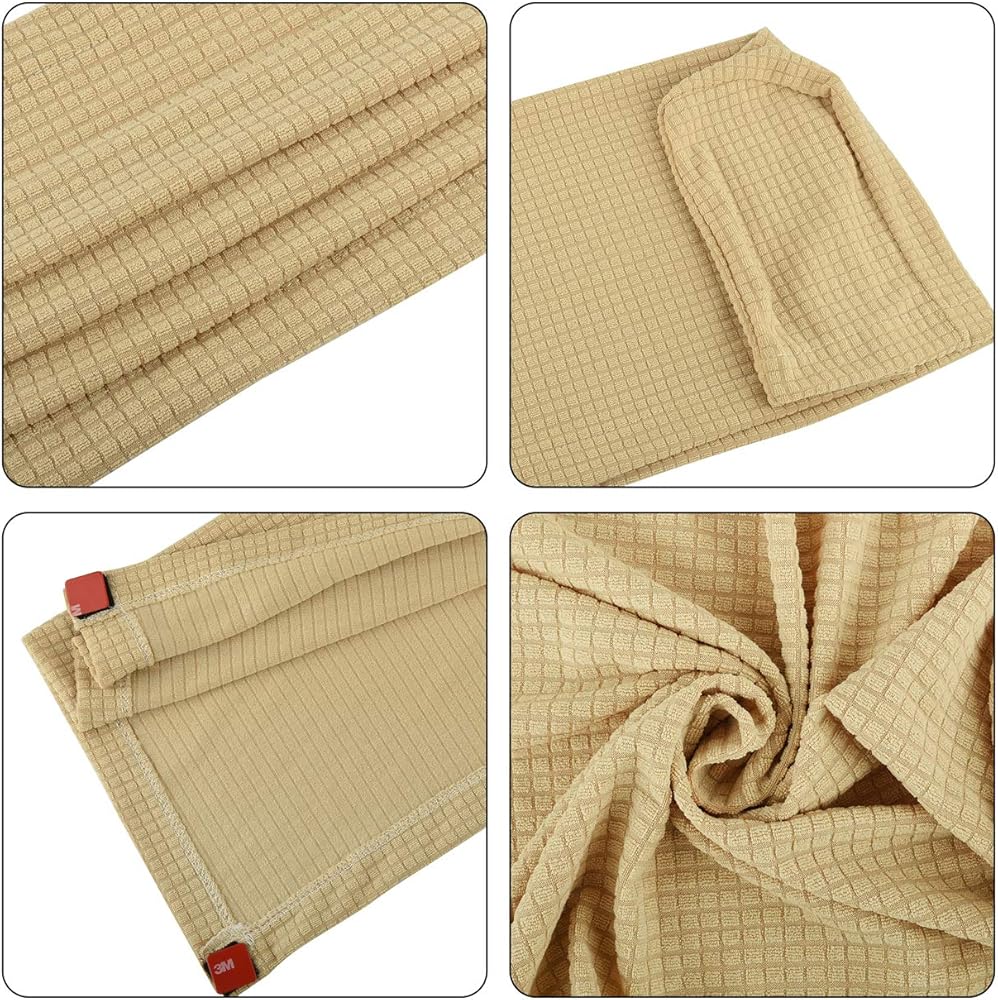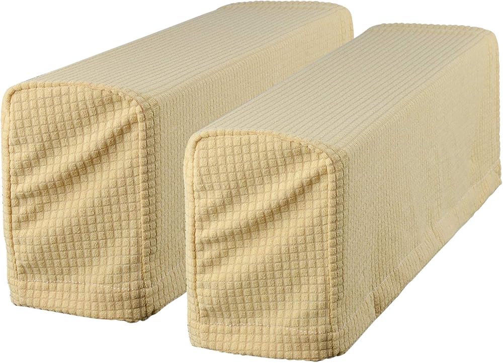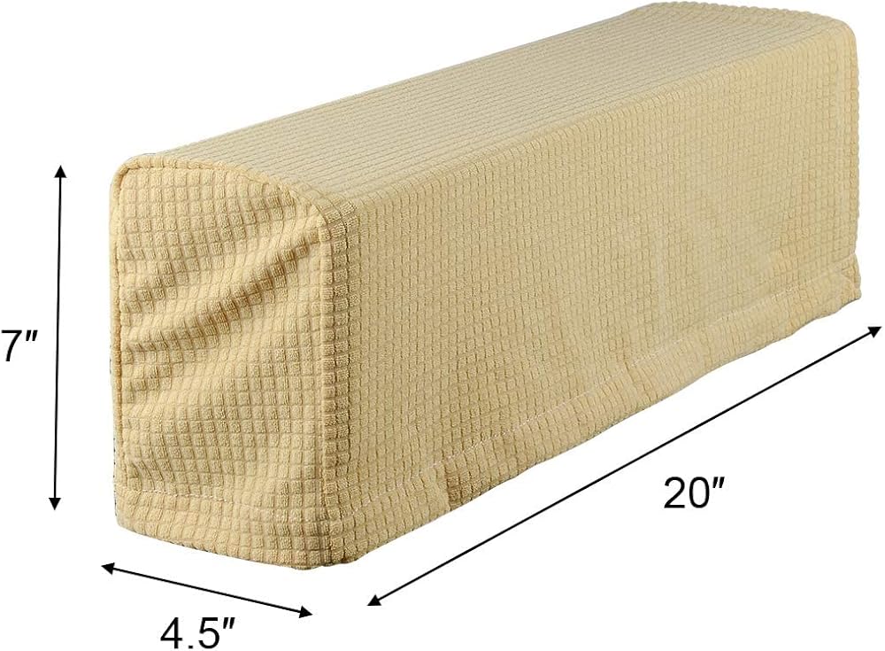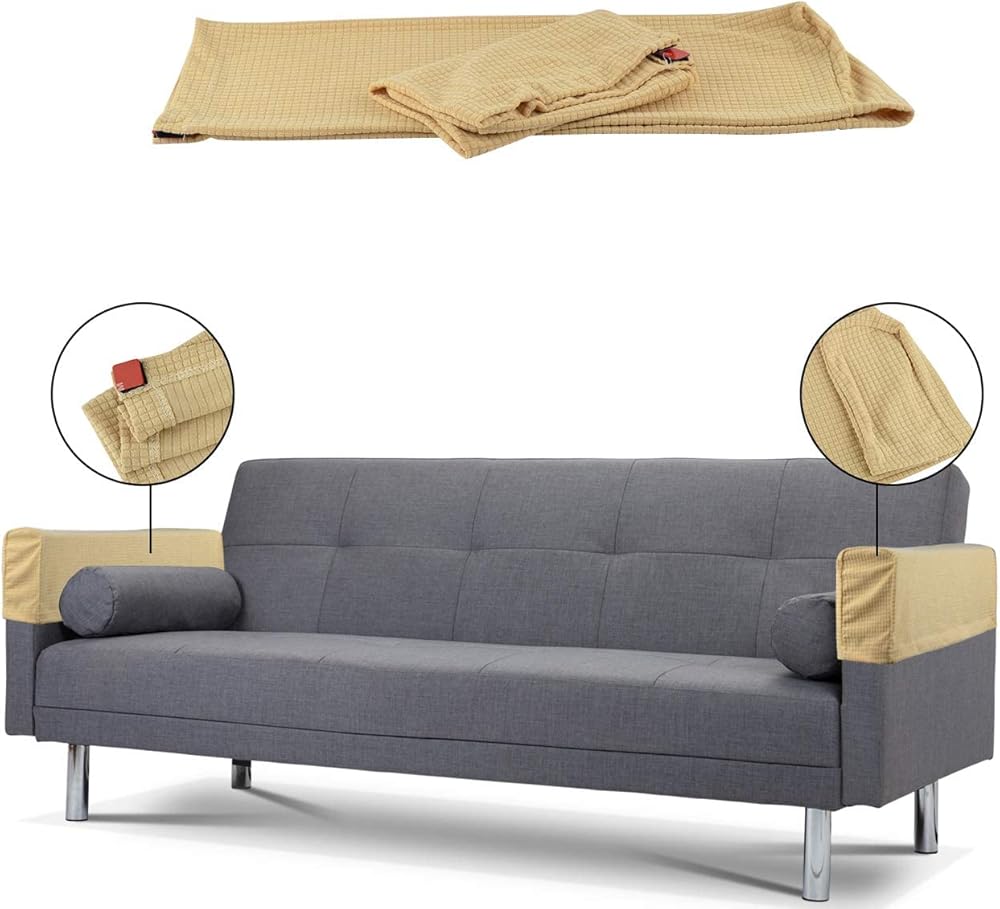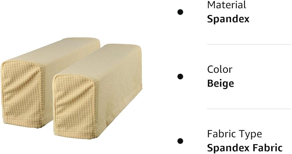 Material: Spandex fabric, with great elasticity. Easy installation, comes with loop and hook stickers for fixing on the sofa arm.