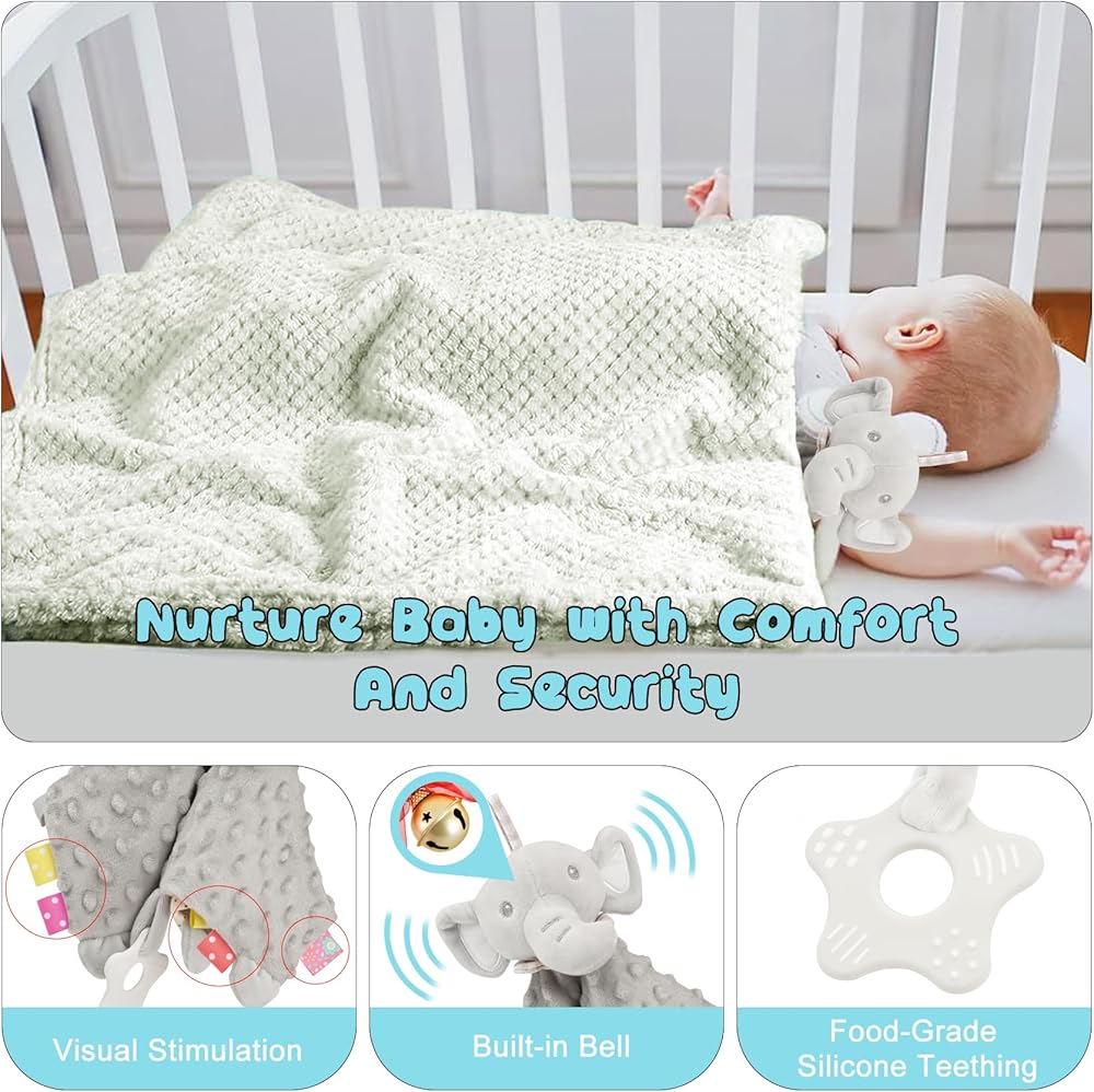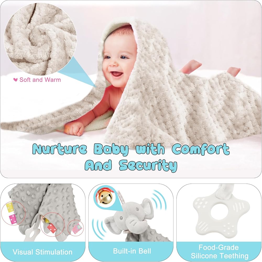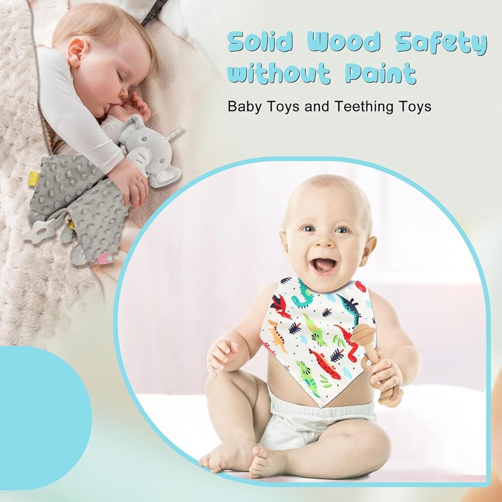High-Quality Materials: We use only the best materials for our baby gifts unisex, the soft and safe flannel fabric for the blanket, and cute elephant security blanket are gentle on baby's delicate skin, and machine or hand washable for easy care, natural beech wood for the uncoated rattle toy, and 100 percent cotton for the bibs and cute elephant socks. Your baby will love snuggling in with these cozy and soft items.