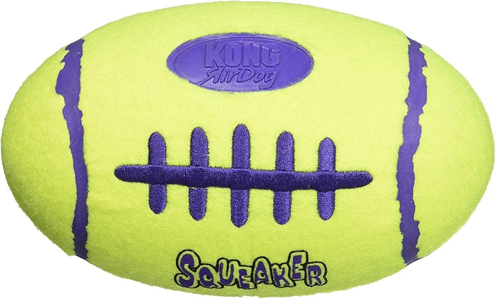 ASFB1 Size: Large Features: -Air squeaker football toy. -Covered in non abrasive material that will not wear down dog's teeth. Product Type: -Balls. Squeaker / Makes Noise: -Yes. Pet Category: -Dogs. Color: -Greens.