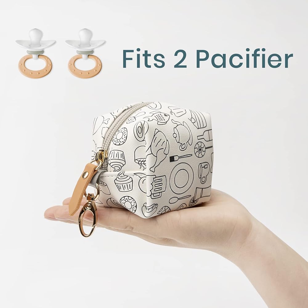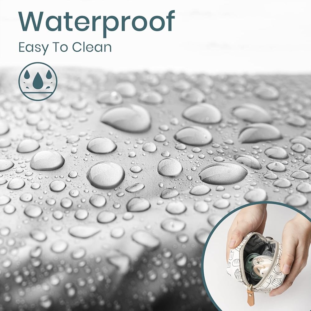 【EASY TO CLEAN】 Built with PU Leather, and 100% PEVA waterproof interior, our pacifier pouch can be wipe clean or wash down under the sink.