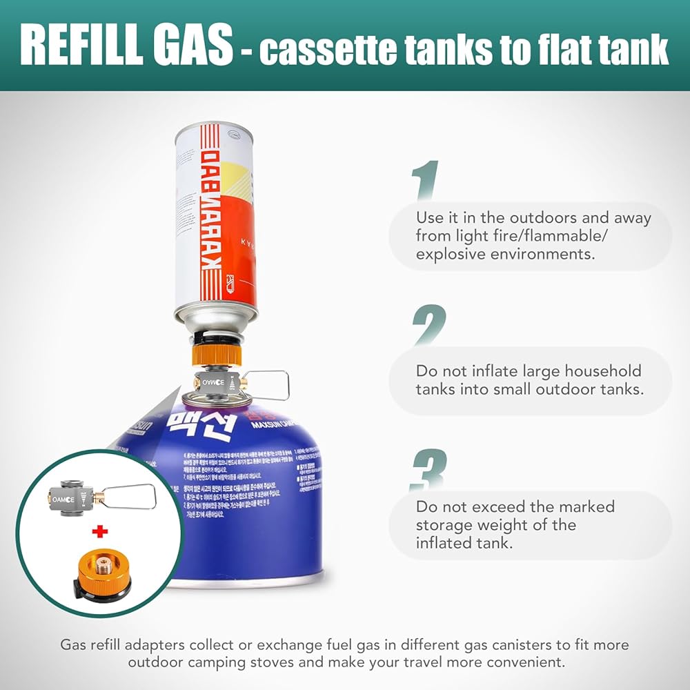 【Refill Adapters Set】Refill adapters set includes a tank pressure relief valve,a butane canister adapter.Easy to collect residual gas which help save fuel and resources.