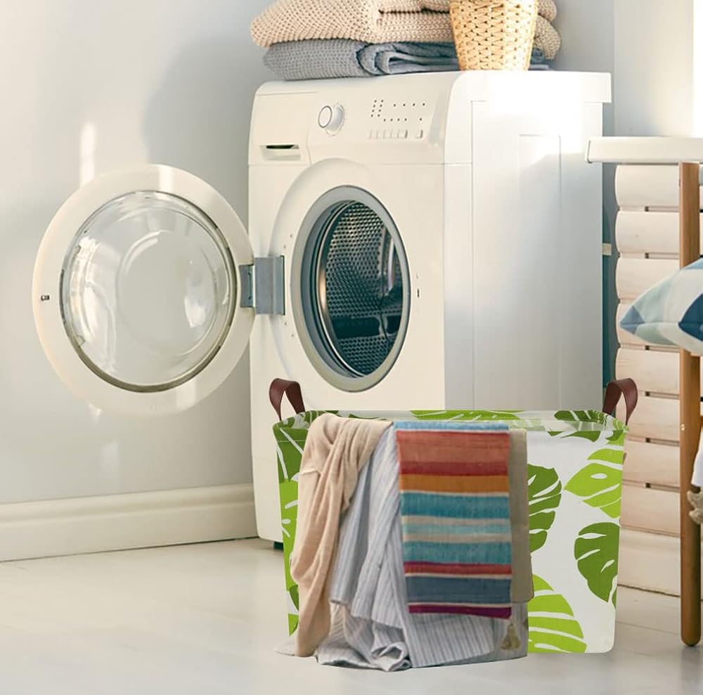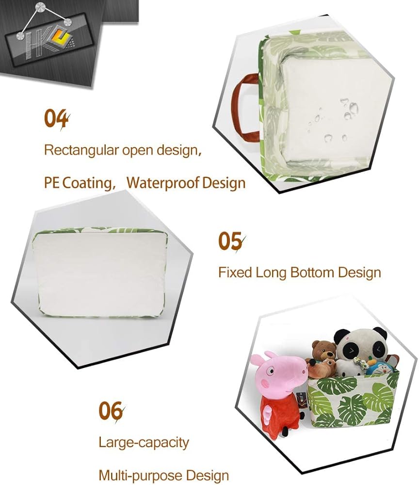 ★NATURAL MATERIAL: Polyester + Waterproof PE Coating Lining. Sturdy wire frame in the material at the top, which to achieve the effect of moisture resistant, lightweight and durable. Easy to clean.