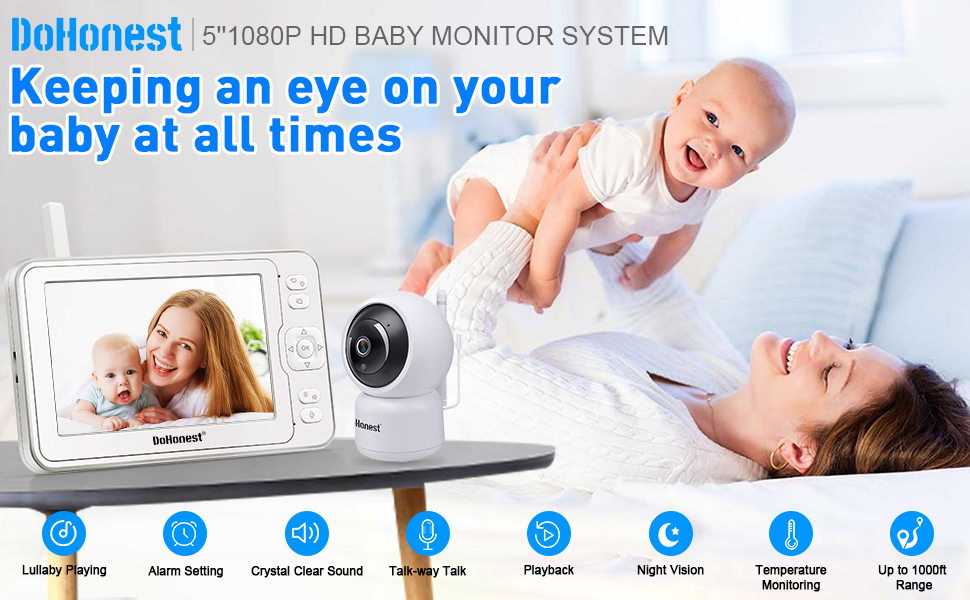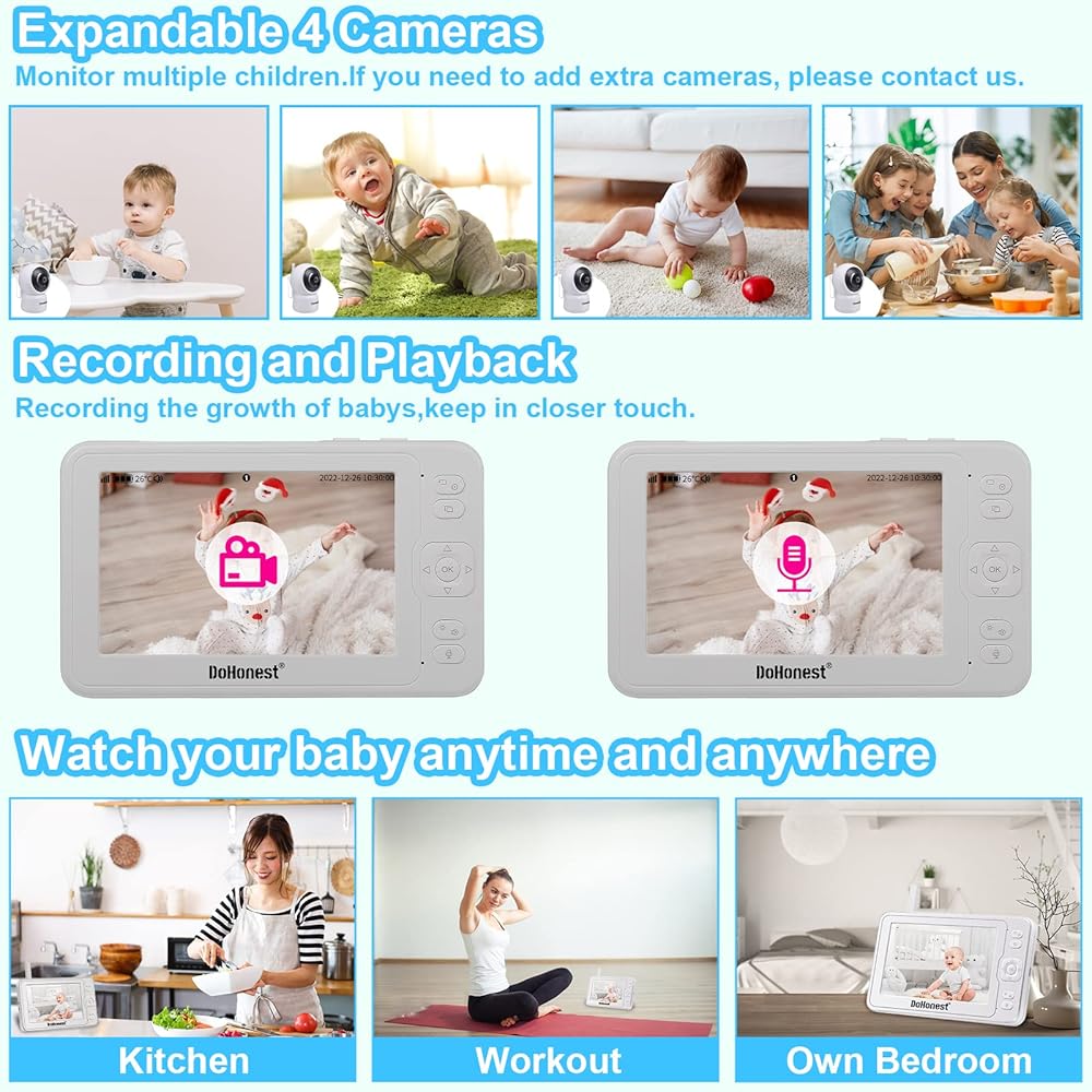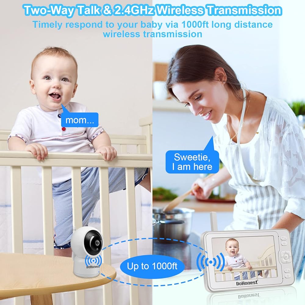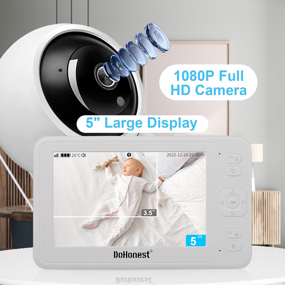 DoHonest Baby Monitor HD 1080P Camera Audio Home Wireless 5" Display Infant Video Monitoring Remote Pan Tilt Infrared Night Vision 1000ft Range Temperature Sensor S06