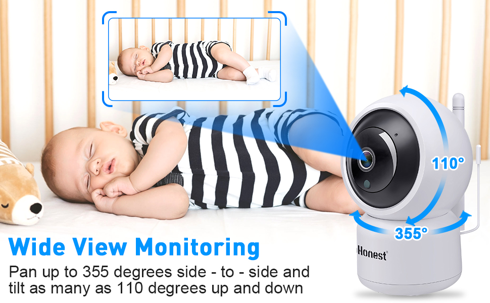 ►5" LCD Display & 2.4GHz Wireless Technology: This baby monitor camera is equipped with a 5 inch Large display. Application of frequency hopping and digital encryption technology ensures secure and reliable connection.