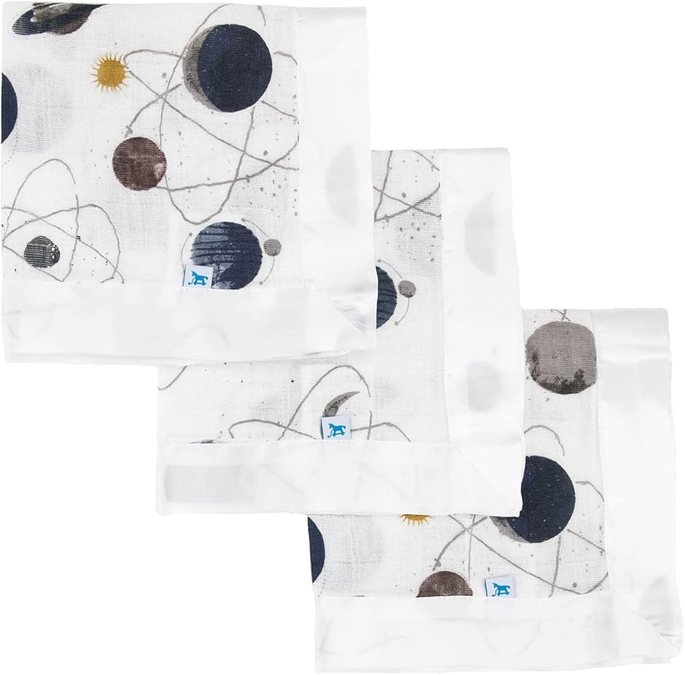 Little Unicorn Security Blankets 3 Pack | 100% Cotton Muslin with Satin Border| Super Soft and Breathable | Baby, Infant, Toddler | Lovey for Boys and Girls | Planetary