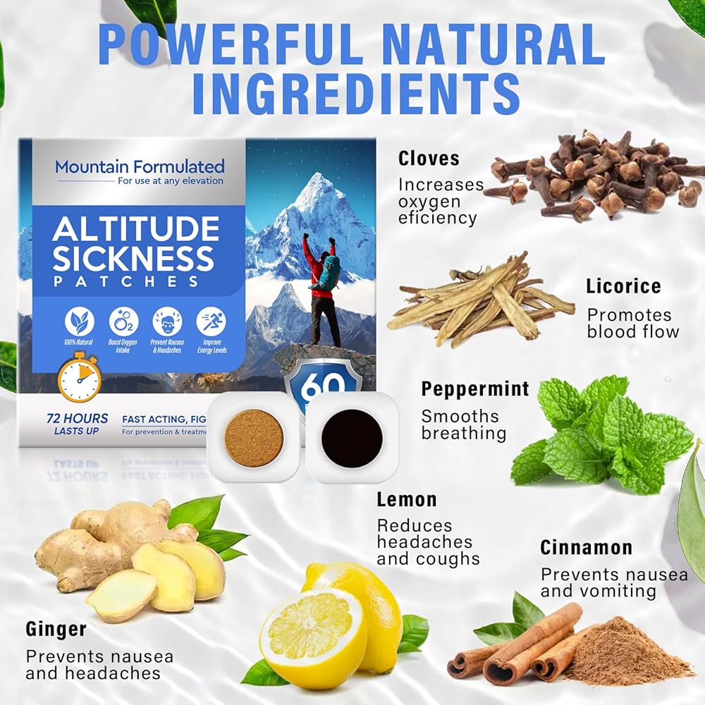 Boost Oxygen Intake: The patches contain clove and peppermint, two highly utilized natural oxygen supplementation solutions. The patches release these ingredients slowly over a 72-hour period to ensure that your body absorbs them evenly throughout your time at altitude.