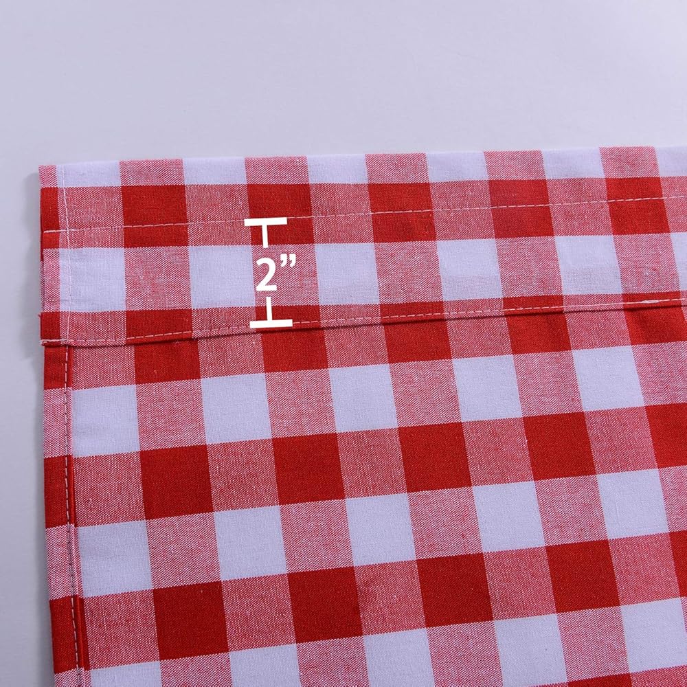 Our checkered cotton blend curtain valances are very elegant. There are five colors for your choosing, such as red, wine/burgundy, black, navy blue, coffee. The perfect rod pocket is easy for you to move curtains and washing curtains. After hanging them, you will find they are really generous and attractive. Offering you comfortable ambient. It is easy to wash by machine in cold water, gently cycle. Do not bleach.