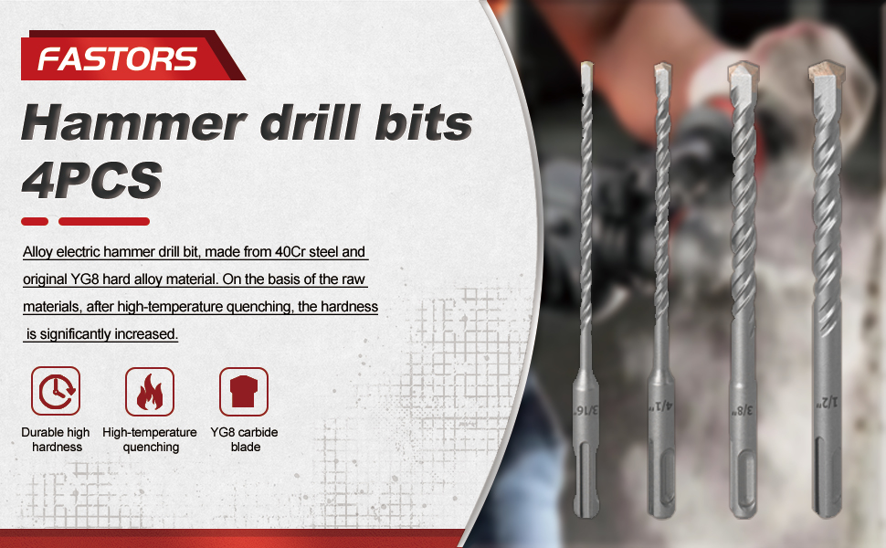 【High Quality & Durable】Rotary hammer drill bits are made of high quality cemented carbide YG8C material which have outstanding hardness and durability.