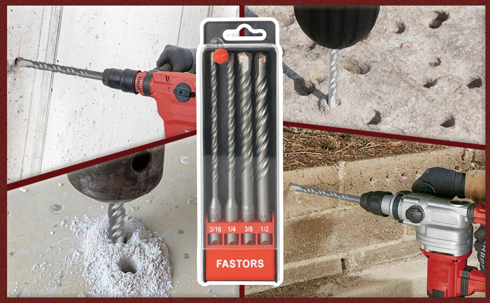Masonry Drill Bit,FASTORS 4 Pack SDS-Plus Rotary Hammer Drill Bits,Carbide-Tipped Drill Bit Set for Drilling Masonary,Concrete,Cement,Brick,Rock,Ceramic Pots with Plastic Case