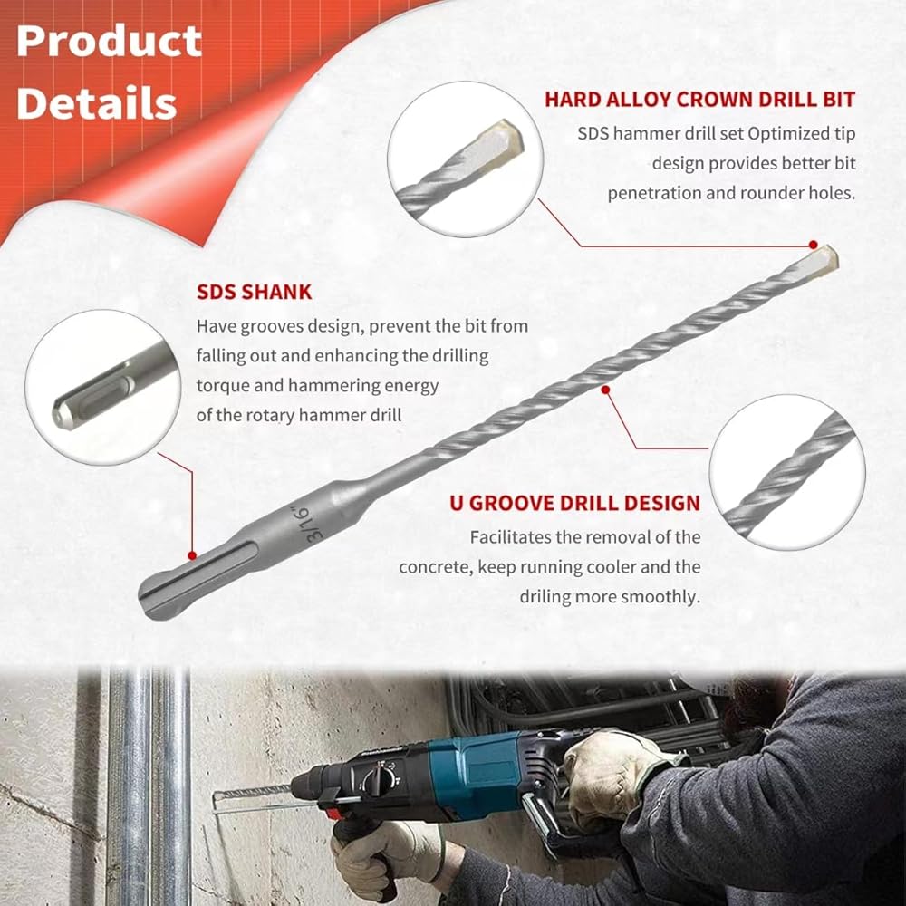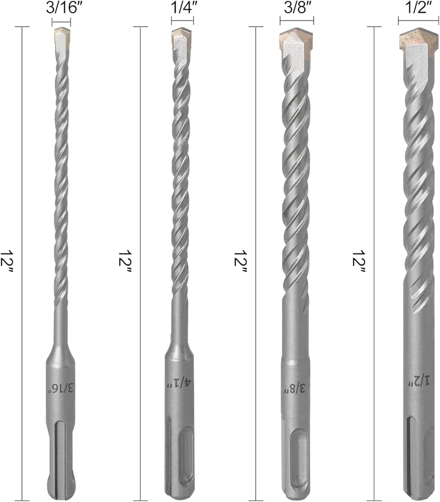 【Drill Bits Set】Hammer Drill bits set include:3/16 X 6 inch,1/4 X 6 inch,3/8 X 6 inch,1/2 X 6 inch with one organize plastic case.