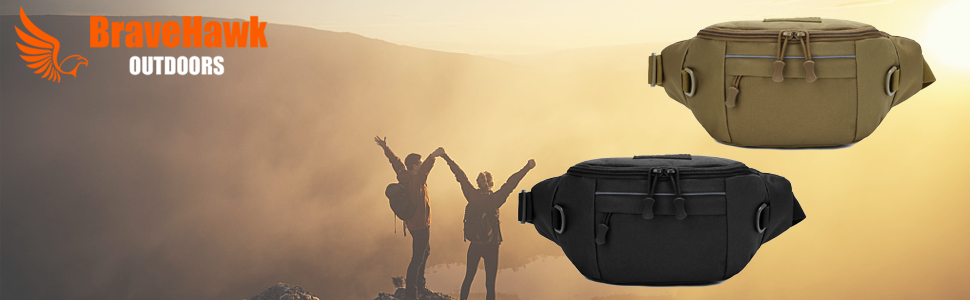 Waist Bag - BraveHawkOutdoors multipurpose waist bag with well handy construction design. 1 main compartment two-way zipper pocket with 1 inner pocket; 1 zippered pocket on the front; 1 adjustable strap; Front pocket is compatible with most of 5.5 inch cell phones. Can carry more than you expected. Medium size: 7 x 4 x 3.5 inch, appropriate size fits for most people.