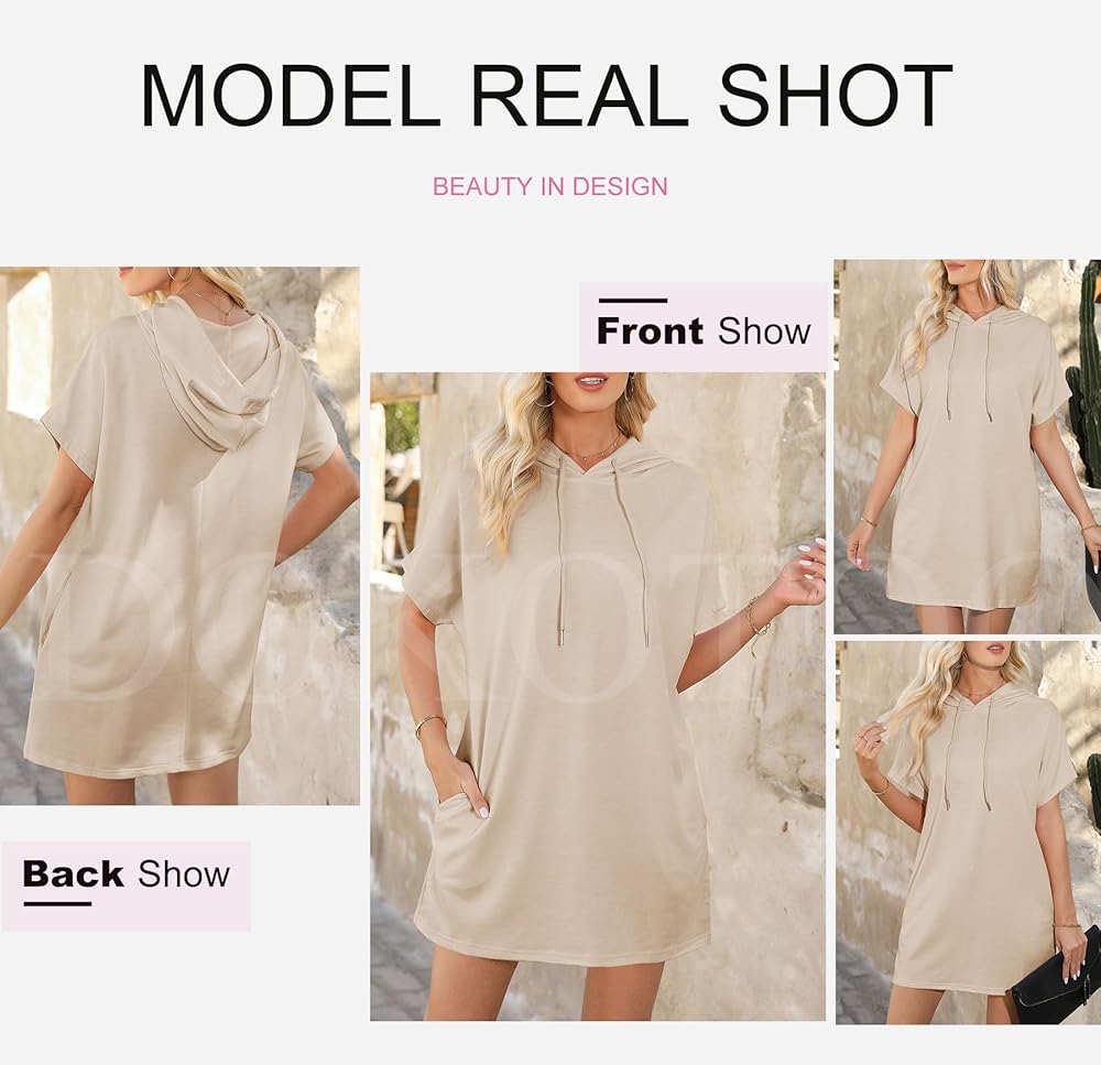 Women hooded tshirt dresses for women of Basic style, easy to match with anything, great for weekend, work, school,sport,hang out or daily casual wear.
