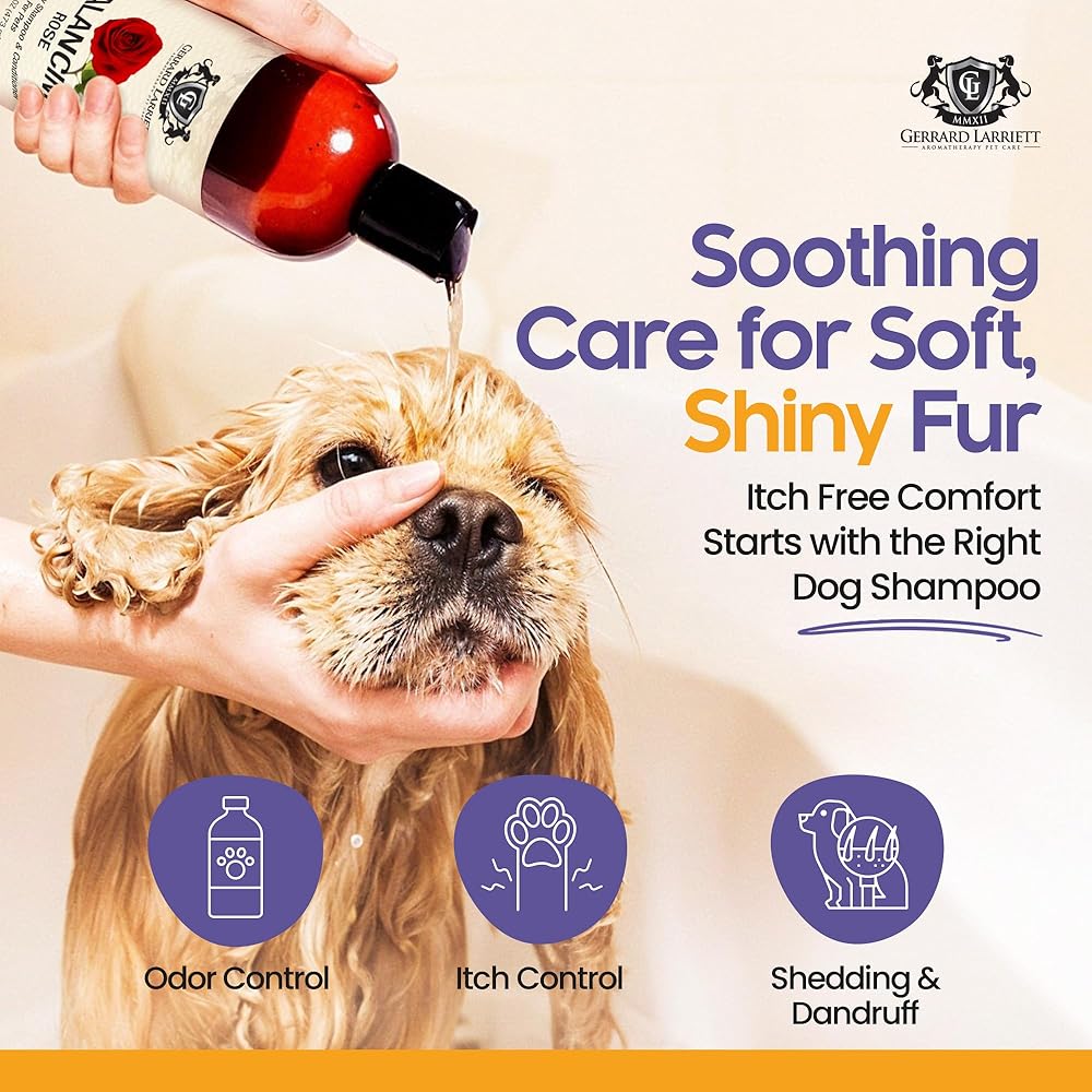 Dog Shampoo and Conditioner Balancing Rose 16 Fl Oz Dog Shampoo Itchy Skin Relief, Aromatherapy Natural Dog Shampoo for Smelly Dogs with Aloe Vera, Rose & Oatmeal Shampoo for Dogs by Gerrard Larriett
