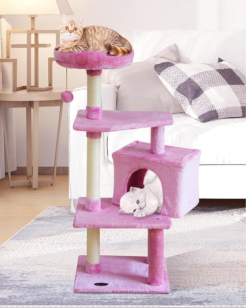 FISH&NAP 10FEN Cute Cat Tree Kitten Cat Tower for Indoor Cat Condo Sisal Scratching Posts with Jump Platform Cat Furniture Activity Center Play House Pink